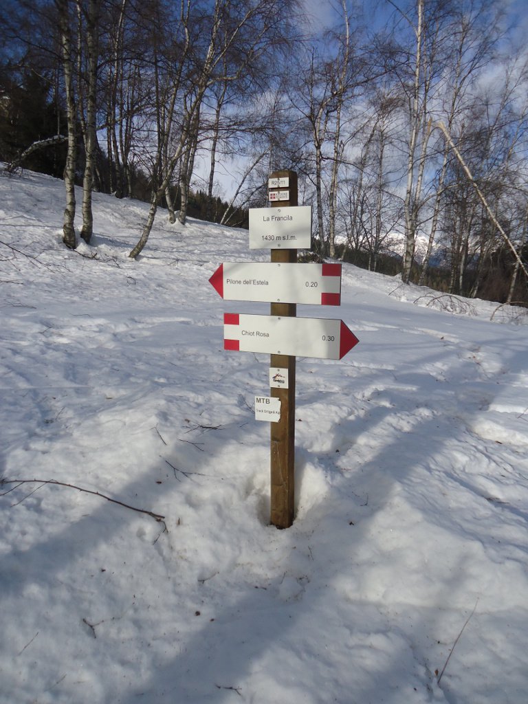 Veloce sgambata prima degli impegni di lavoro e allora si è pensato all’Alpe. Si arriva in auto sino al Chiot Rosa (strada quasi del tutto sgombra, qualche tratto con neve e ghiaccio ma nulla di preoccupante).