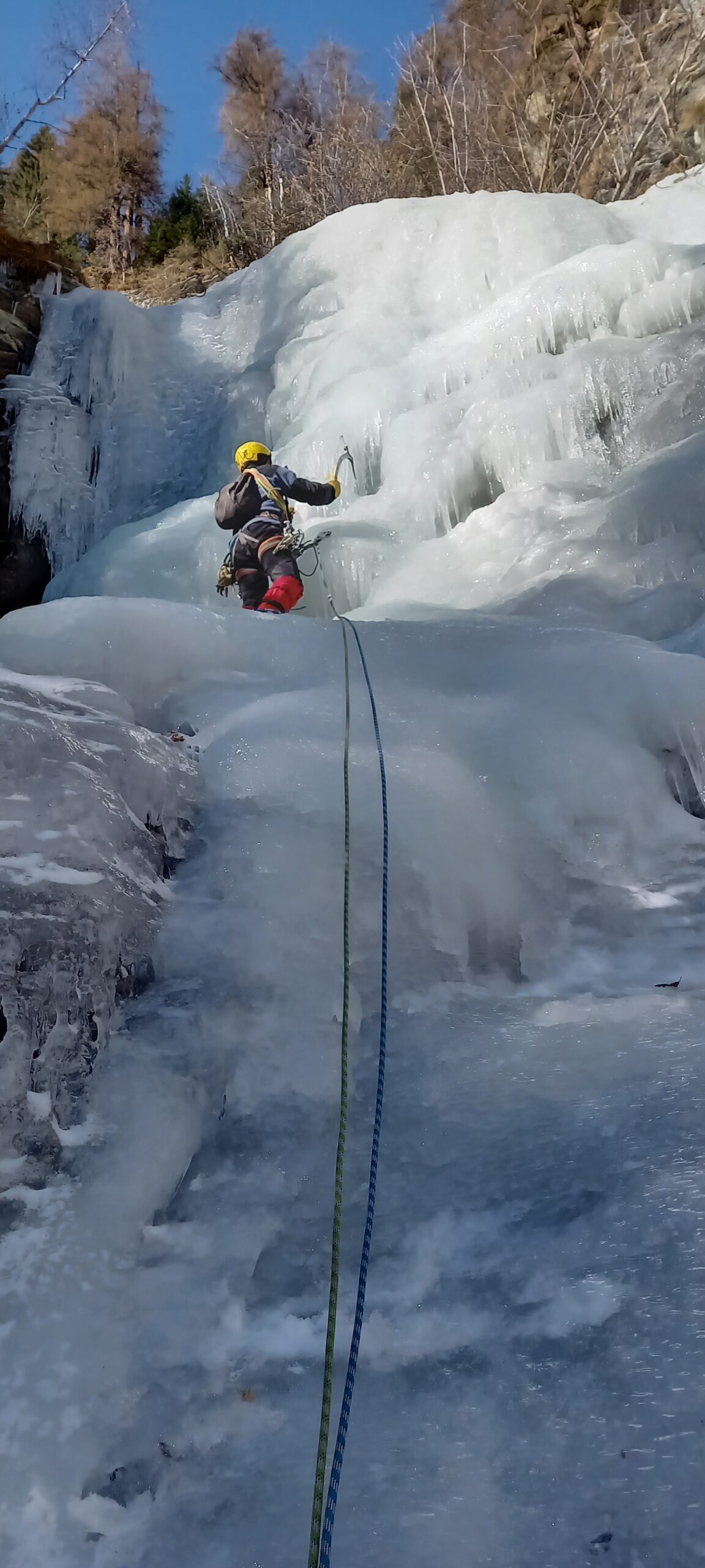 Avvicinamento veloce , 3 tiri con soste su chiodi da ghiaccio, non trovate le soste su spit arrivati alle 10,30 in alto prendeva il sole poi salendo tutto in ombra Ghiaccio ottimo