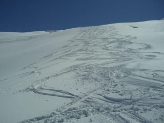 ghiacciai in ottime condizioni,pendio finale coperto di neve,crepacci chiusi o coperti,rimpfish e allin in condizioni paritetiche;neve,complici le ultime nevicate farinosa e intonsa