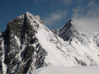 Seconda tappa della due giorni svizzera. Il sereno notturno ha migliorato la qualità della neve. Salita molto appagante, in bellissimo ambiente. Discesa molto bella in alto, sciabile sul basso e pappone a metà. Crepacci ben chiusi, si fa tranquillamente slegati. Il pendio un po’ ripido finale è tracciato benissimo. Una nota: fino alla prossima settimana è aperta la funivia del Felskinn, e la “vampira” della Langfluehutte non c’è (è aperta la zona notte e la cucina): non solo ci ha pappato 65€ a testa, ma ci voleva pure fregare 5€ nella conversione e 6€ nel resto! Grande Nanni che ha stretto i denti ed ha concatenato anche lui 2 “4000” in due giorni malgrado il raffreddore.