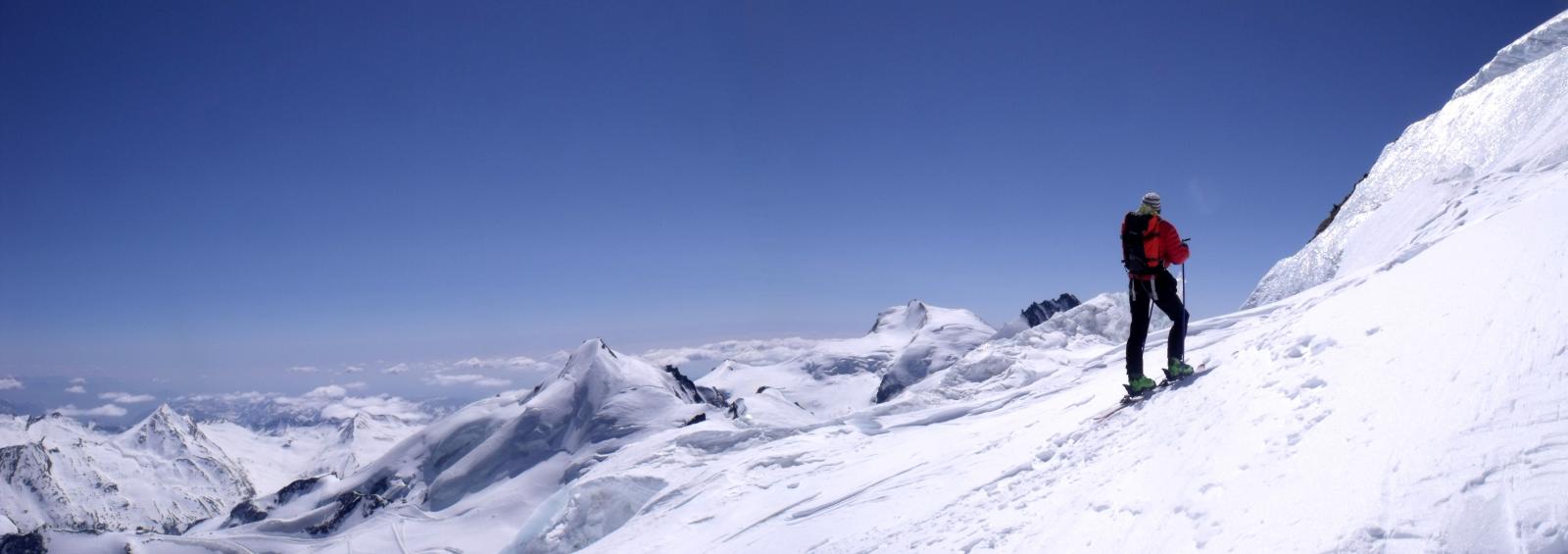 Dalla cima una breve discesa all’Alphubeljooch con gli sci da dove si ripella e con una lunga diagonale ci si porta lungo le tracce che salgono all’Alphubel dalla Fulhalp.