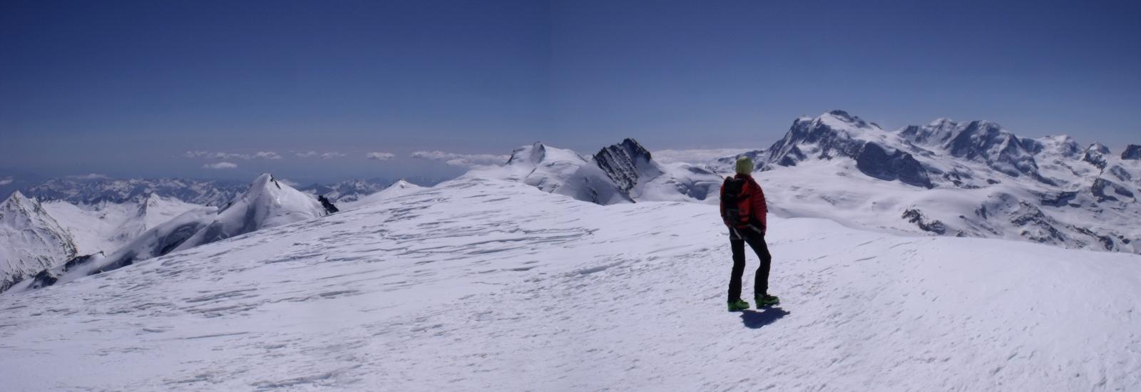 Dalla cima vedute spettacolari sui 4000 del Vallese e del Rosa.