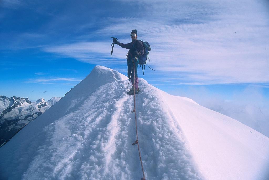 Una bella e riuscita gita sociale organizzata dal sottoscritto con Enzo R. per il CAI Ule Genova. Siamo partiti il 2 agosto da Genova e arrivati a Saas Fee, dove con la funivia siamo saliti alla Langflue Hutte. Non c’era molta gente al rifugio per essere ad inizio agosto, peccato che questa struttura assomigli più ad un albergo di alta quota che non ad un rifugio vero e proprio, inoltre la musica di sottofondo è troppo alta e veramente fastidiosa. Come al solito…piuttosto caro, e l’acqua in particolare…questi svizzeri si fanno pagare tutto anche con prezzi esagerati. Il giorno seguente siamo partiti per le 4,30 e siamo saliti lungo il ghiacciaio, che in alcuni tratti era veramente molto crepacciato, e la pista faceva lunghi e laboriosi giri per evitare alcuni grossi crepacci. Ma crepacci a parte il ghiacciaio era comunque in buone condizioni, con neve compatta e dura. Bello il ripido pendio finale che porta sull’ampio calottone glaciale della vetta. Siamo saliti in circa 4,30 ore dal rifugio alla cima. La giornata era decisamente bella, a parte qualche nuvola passeggera ed un vento fastidioso che nella parte alta non ci ha mollati per un solo istante ! La temperatura era bassina dai 3500 in sù. Nonostante il vento siamo riusciti a goderci la cima per una mezz’oretta per guardare il panorama che era molto esteso e spettacolare, oltre che per scattare le foto di rito. L’Alphubel è davvero una bella e grande montagna, con un ambientino glaciale d’alta quota davvero grandioso ! Una gita sociale pienamente riuscita e una montagna che mi è piaciuta molto, l’idea di salirla è stata indovinata e felice. Peccato essere stati in pochi…ma come si suol dire…meglio pochi ma buoni ! Secondo me, come difficoltà complessiva, forse un PD rispecchia meglio la situazione attuale di questa salita. Sul ghiacciaio era presente un pistone…d’altronde è una montagna molto nota e giustamente molto frequentata. Un “4000” decisamente consigliabile, sia per la bellezza dell’ambiente, della montagna, dei panorami e per l’itinerario facile ed accessibile a molti, che in condizioni normali non presenta difficoltà particolari…occorre solo un’occhio di riguardo durante l’attraversamento di alcuni crepacci.
