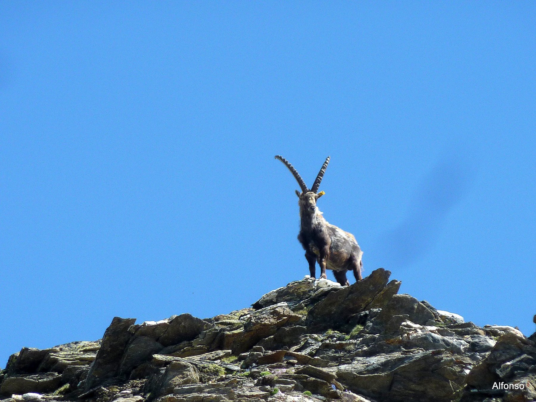 Fantastico balcone sul ghiacciaio del Lys e alcune vette (nostalgiche) del Rosa; parte finale della dura salita in compagnia di alcune femmine di camoscio con i piccoli e molti stambecchi. Giornata FullHD!