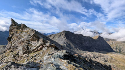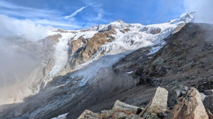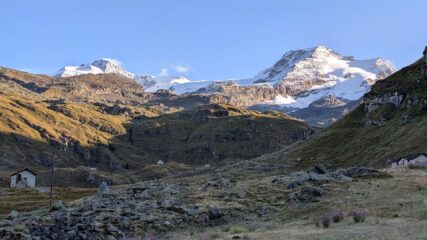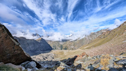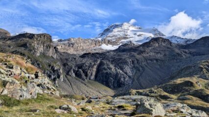 Pour le retour, nous avons bouclé par la crête de Lintycabano qui offre quelques vues sur le glacier d’Indren dans une ambiance lunaire.