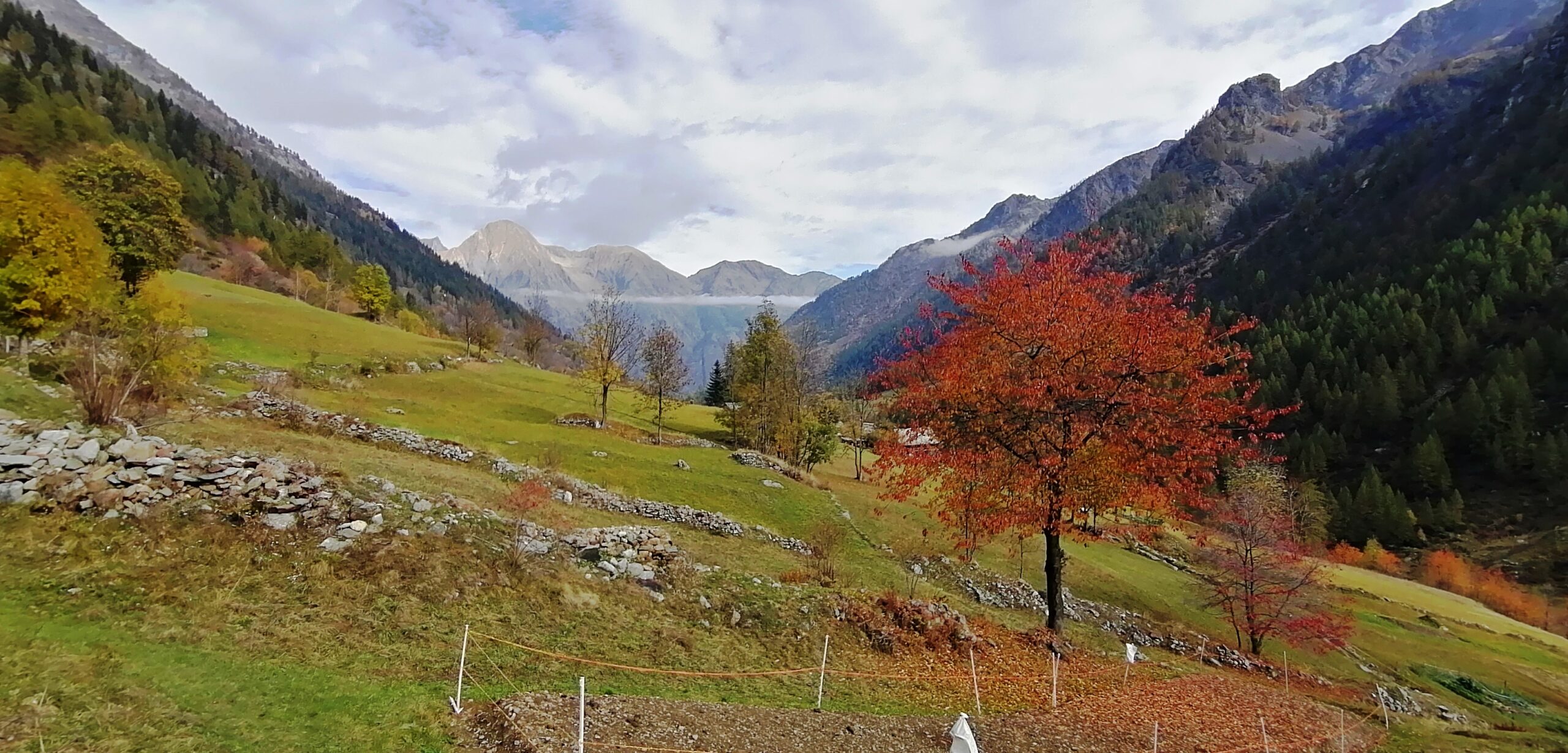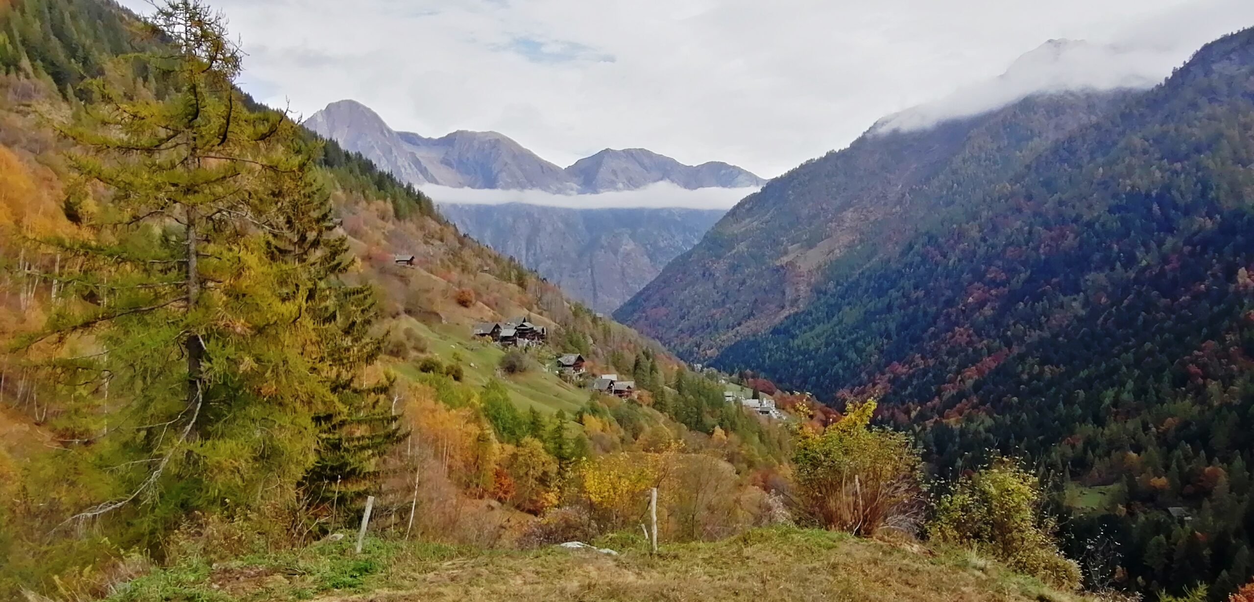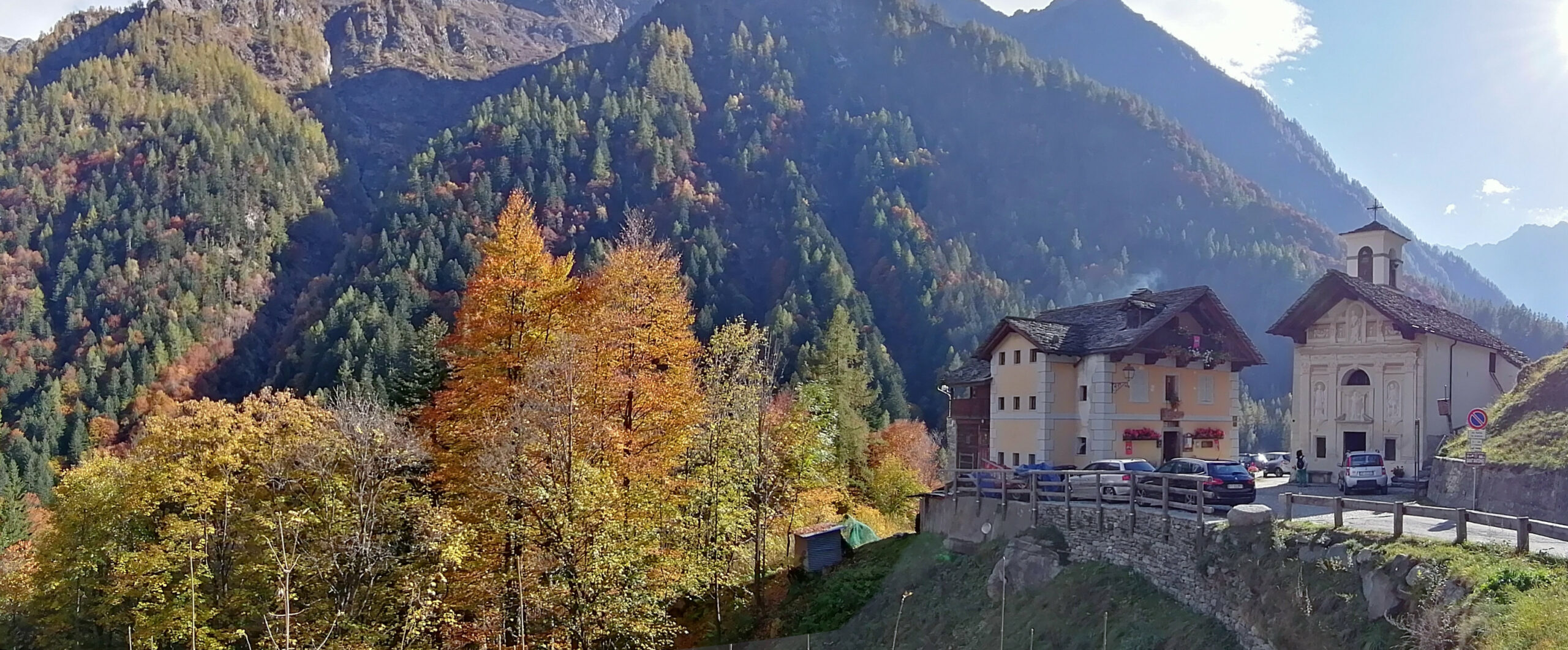 In 15 m. si scende a Peccia, l’ultima frazione del fondovalle, antico villaggio più volte devastato dalle valanghe. Superata la frazione su un dosso si raggiunge la Chiesa di San Grato con svettante campanile, dove termina il nostro percorso.