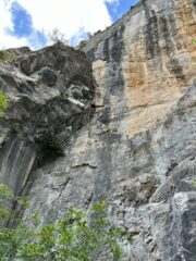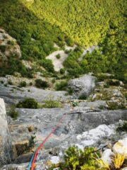 Bellissima via. Stile atletico. Bella roccia e tanti cespugli.