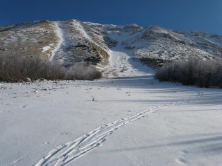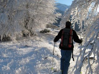 salita con Piero Botto, incontrato tracce della volpe, del lupo, della lepre.