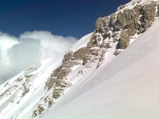 la nevicata del 30.03.11 ha apportato buoni 30 cm che sulla parte superiore del canale tendeva a staccarsi dal manto sottostante. Prestare molta attenzione sulla biforcazione per la cima. (sella dell’orso).