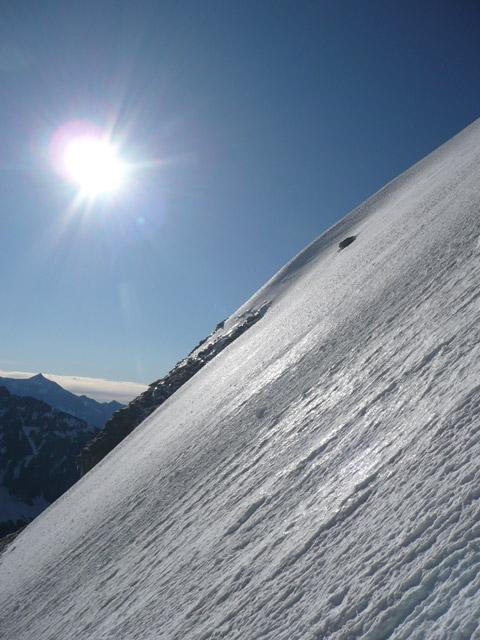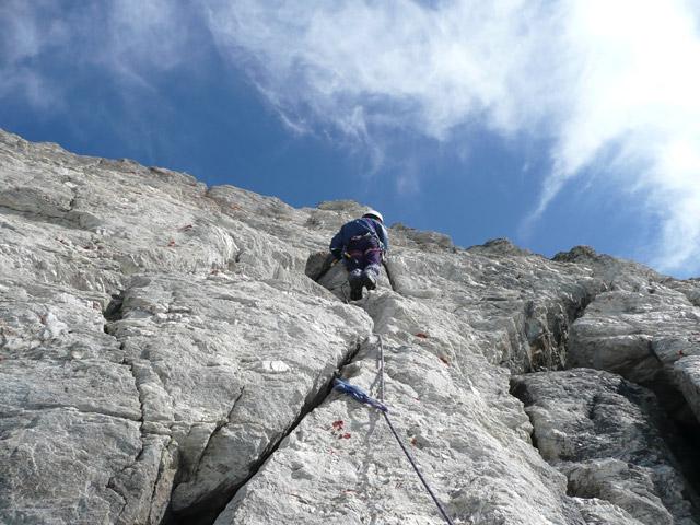 Bella salita, di grande soddisfazione, completa dal punto di vista alpinistico. Solo noi in giro.
