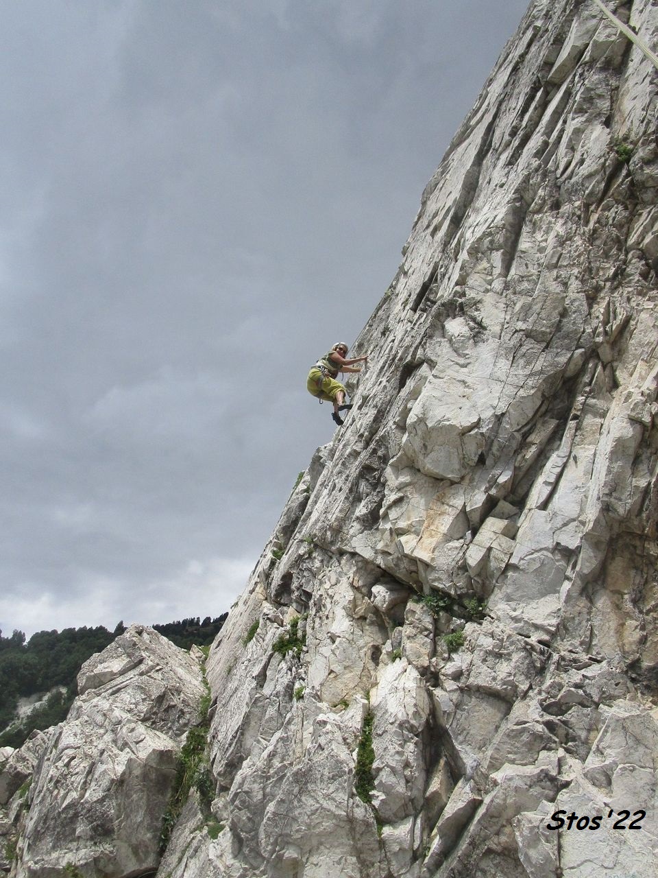 calcare bianco tipo "paretina di marmo di Foresto", che diventa scuro se agglomera licheni (niente paura: tutto ben aderente). super comodo e vario. tiri mediamente di 20 metri. se più lunghi c'e' la sosta in mezzo. basta corda 60m. c'e' per i big ma c'e' anche molto di facile. pochi i 6a (si passa spesso dal 5c direttamente al 6b). in tutto 100 vie!
