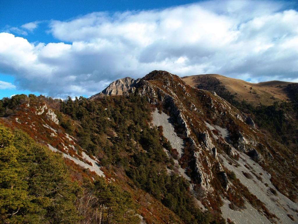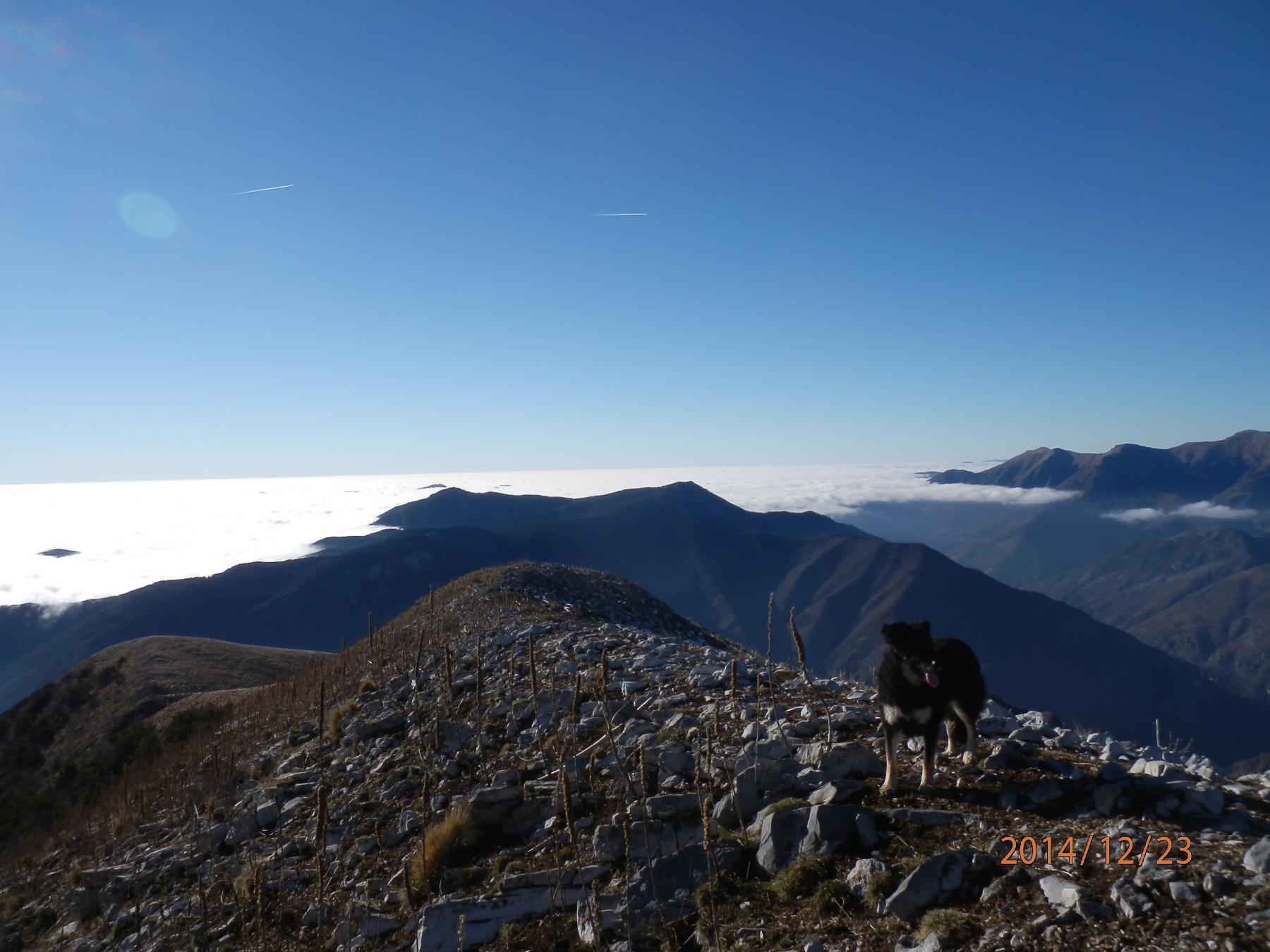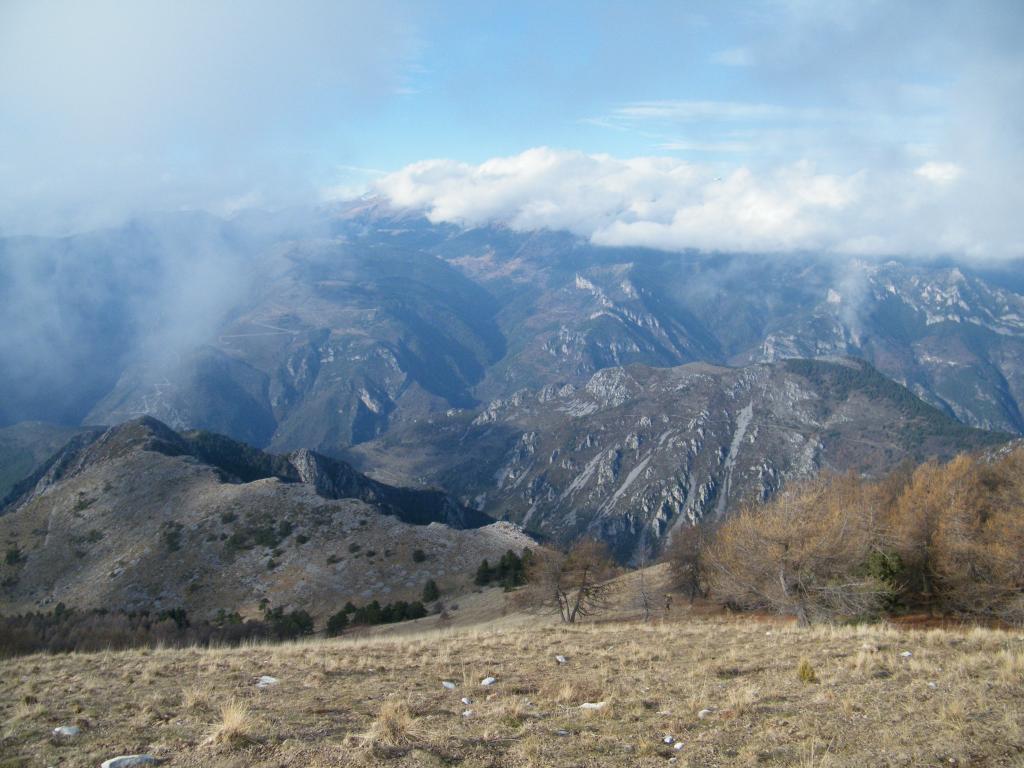 Alla successiva biforcazione (pal. 164) si tralascia la diramazione a Dx che va nelle “baragne” (posto caratteristico che merita essere visitato) e superata la pal.206 (ripido) si arriva alla Bassa d’Anam (pal. 205), quindi per crinale (tracce) e poi a Dx, su pendio erboso, si giunge in vetta. Bel panorama sul Toraggio-Pietravecchia, sul Lugo e Balconi di Marta e sulla costiera Mangiabò, Authion, Tuor, Diavolo.