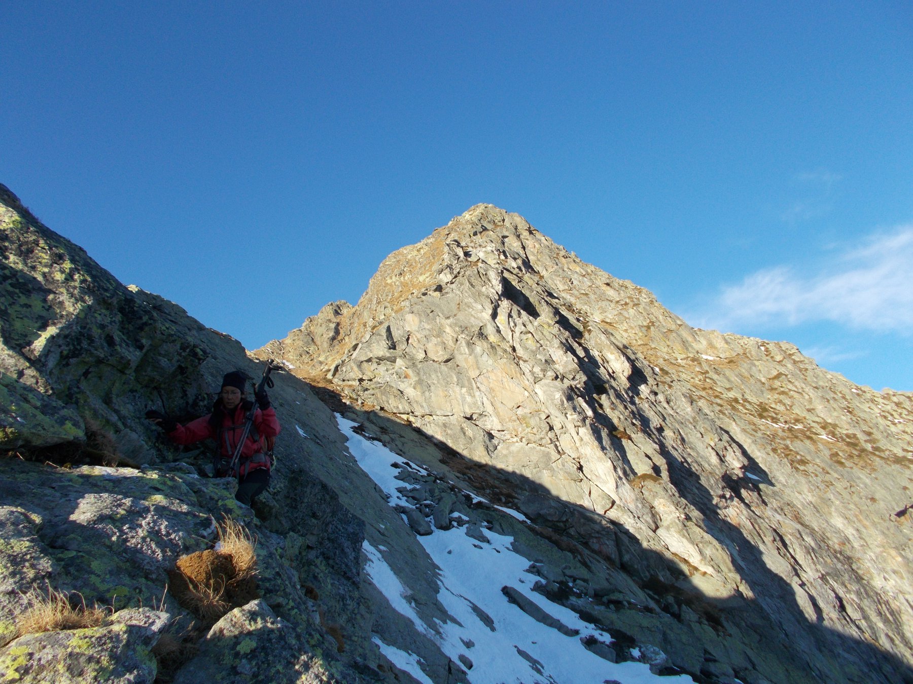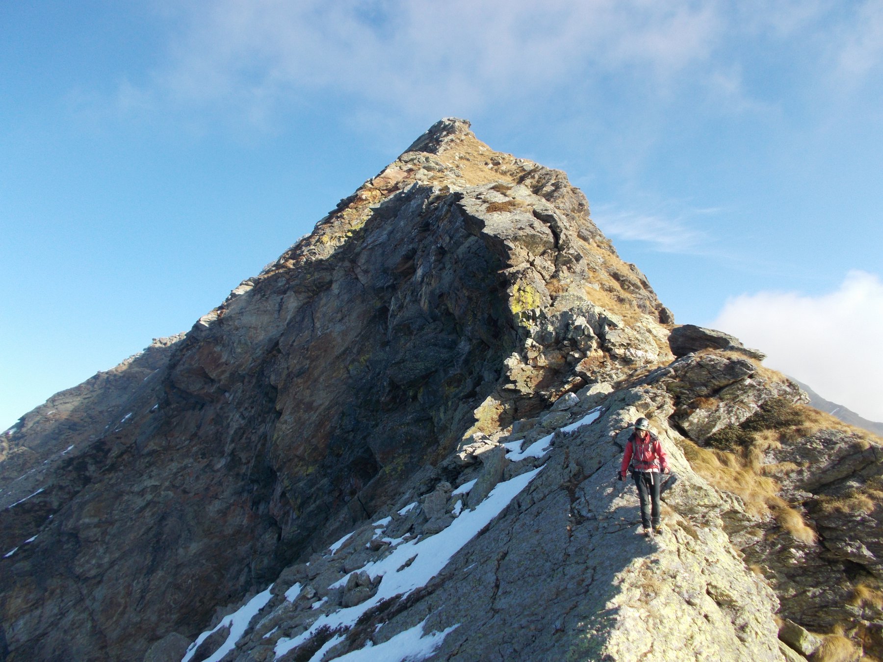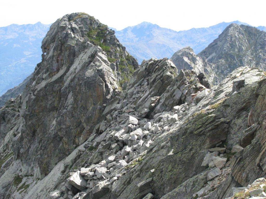Dalla cima del Monte Vailet, proseguire il percorso di cresta verso est, su magre tracce di animali, si aggirano i primi spuntoni rocciosi abbassandoci di qualche metro sul versante valdostano, si giunge ad un stretto intaglio, ora si aggira a sud, su magra traccia fra l’erba olina e si guadagna la sommità risalendo sempre su erba un brevissimo canalino, su terreno esposto.