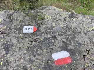 Dal bivio ben segnalato per Campolamana/Camasco, i segni di vernice bianco/rosso sono ora molti e ben evidenti nonostante l’erba alta li nasconda. Da Camasco, verso la sella che immette al pianoro del rifugio, il sentiero diviene un po’ più impegnativo per l’esposizione (catene) e per il ruscellamento di acqua sul sentiero.