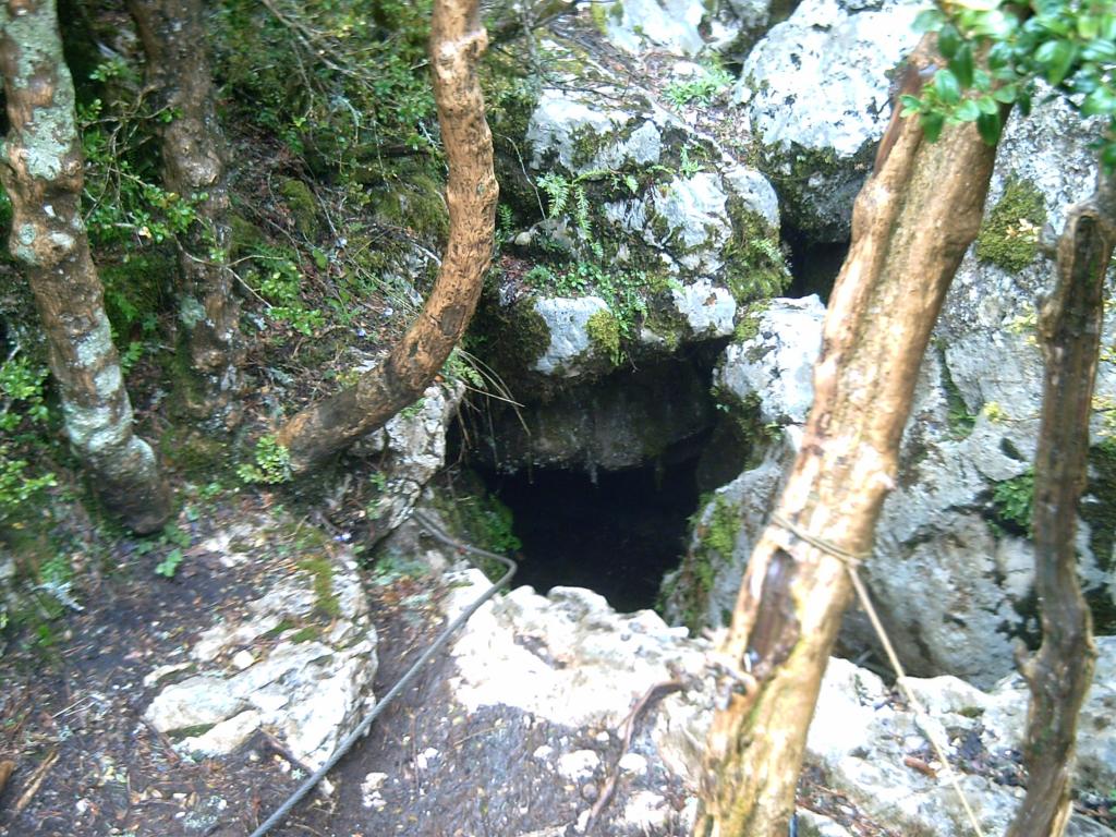 Dalla casetta della vestizione si cammina nel bosco e in poco più di cinque minuti si arriva al pozzo d’ingresso, ci si scala per mezzo di una scaletta in legno alquanto ballerina, poi per scalini fino ad arrivare ad una biforcazione, dove da un lato si raggiunge una sala con un laghetto. ritornando sui propri passi si imbocca l’ altro lato della biforcazione , attraverso un passaggio stretto, si raggiunge un altra sala dove si incontra il primo ponte delle scimmie 15 metri facile che scavalca un pozzo profondo 36 metri.