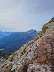 Arrivati in cima, proseguire per la cresta seguendo i bolli fino a raggiungere il sentiero attrezzato Olivieri. Salire nuovamente seguendo la cengia (occhio a possibili cadute di pietre) fino al suo termine su ampi pianori. Si chiude quindi l’anello scendendo alla stazione della seggiovia (qualche facile tratto attrezzato).