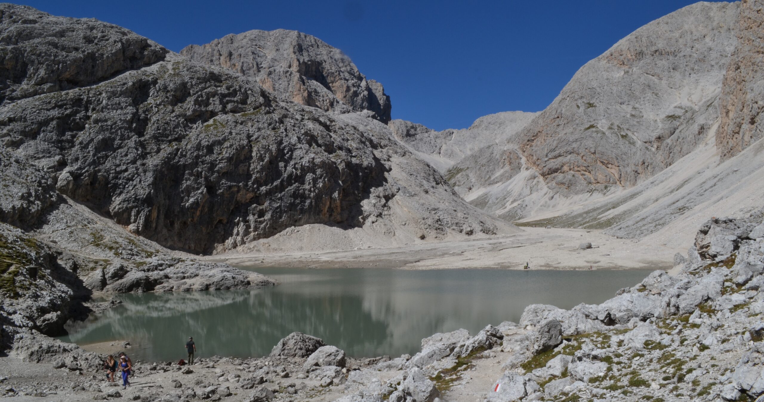 Traversata varia e completa che, salendo dalla verde val Duron, tocca lo splendido lago d’Antermoia e il passo d’Antermoia per poi percorrere il vallone di Vajolet in discesa. Si parte da Campitello di Fassa (1460m) imboccando la val Duron, ma si può accorciare di 400m di dislivello il percorso usufruendo del servizio navetta taxi (10 euro a testa) fino al rifugio Micheluzzi (1840m). Dal rifugio si percorre la pianeggiante sterrata fino a Zopei (1890m), dove si lascia la val Duron seguendo a sinistra il sentiero 578 per il passo di Dona. Il sentiero sale ripido e ben tracciato e intercetta al passo delle Ciaregole, quota 2282, il 580, proveniente dalla val di Dona. Si prosegue sul 580 fino al passo di Dona (2516m, circa 2h dal rifugio Micheluzzi), transitando sotto le prime pareti dolomitiche della giornata, come il Sass de Dona, e in 15 minuti si raggiunge il rifugio Antermoia (2480m) e l’omonimo lago, un vero gioiello d’alta quota. Da qui si attraversa il lunare vallone d’Antermoia lungo il sentiero 584, che poi si inerpica al passo d’Antermoia (1h-1,5h dal rifugio Antermoia 2770m). Si prosegue sul sentiero 584 e si scende al rifugio Passo Principe (2600m) in circa 30 minuti, su terreno leggermente franoso, ma non difficile (è l’unico tratto leggermente più impegnativo). Poi discesa per la val di Vajolet su largo sentiero, a toccare i rifugi Preuss e Vajolet (2240m), Gardeccia (1950m). Da qui ci sono quattro possibilità per concludere l’itinerario: