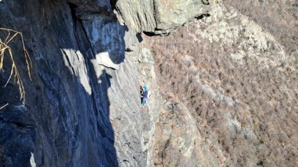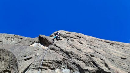 Dopo Grazie di Tutto, salito Vai a Nero e usciti in cima alla Rocca con gli ultimi due tiri di Parete Nera (Manera).