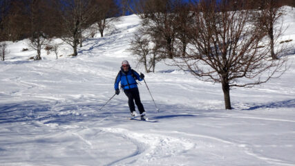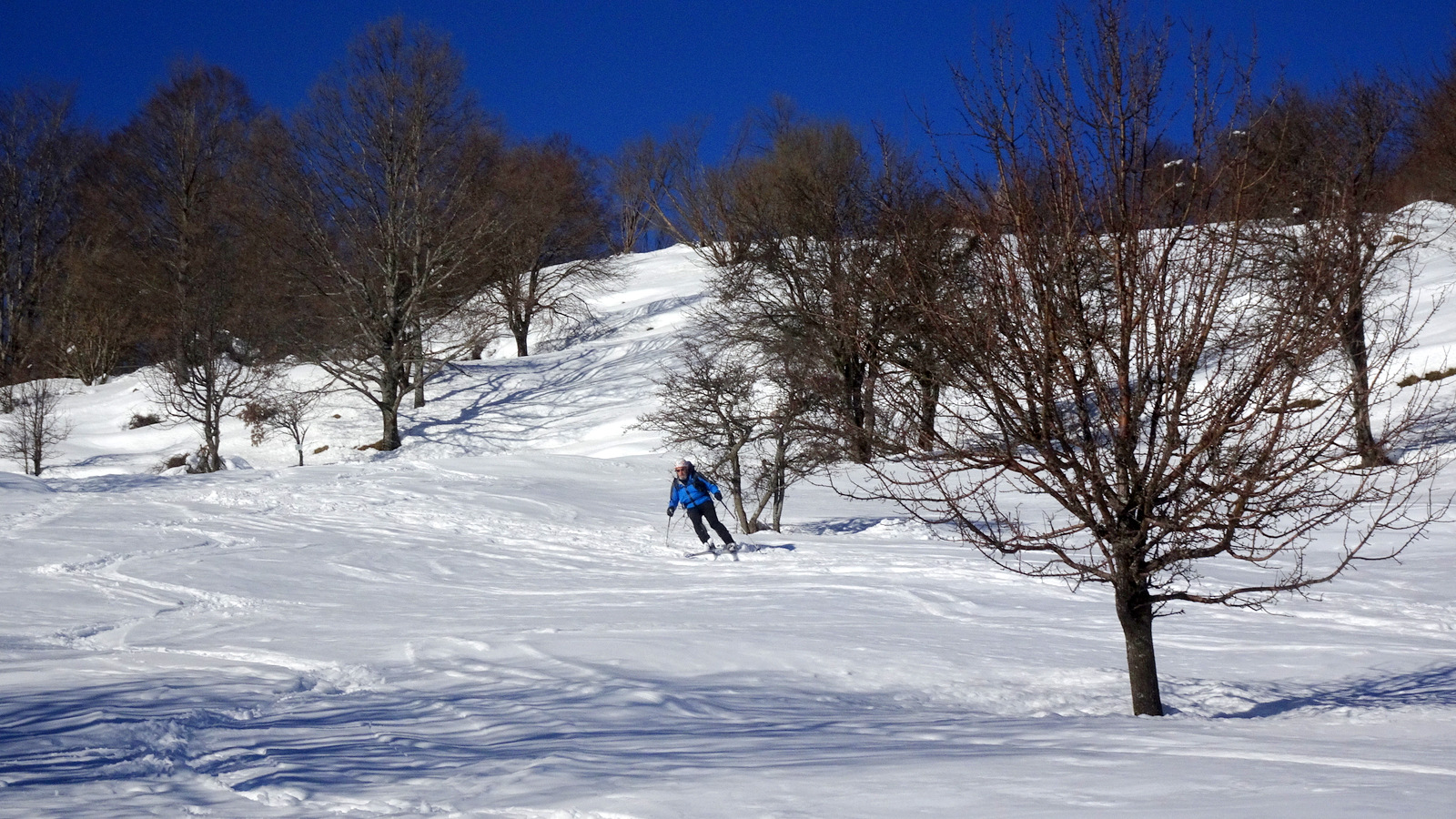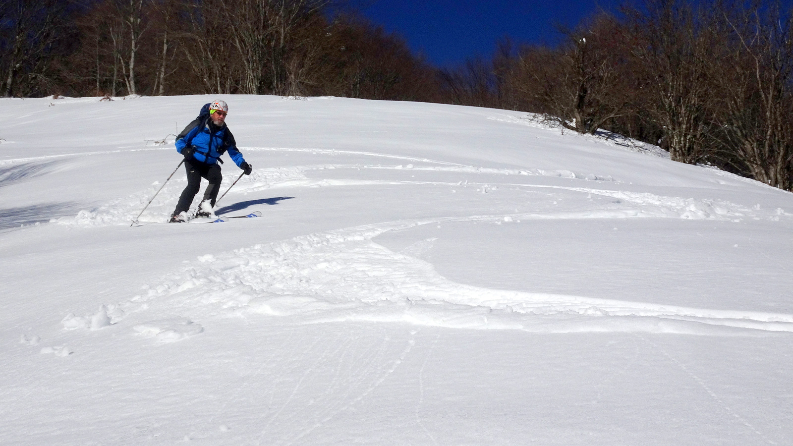 A sud i pendiii e la neve erano belli , ma per il caldo ed alcuni distacchi (bocche di balena ) importanti abbiamo preferito evitare la parte più ripida che sarebbe stata molto bella .