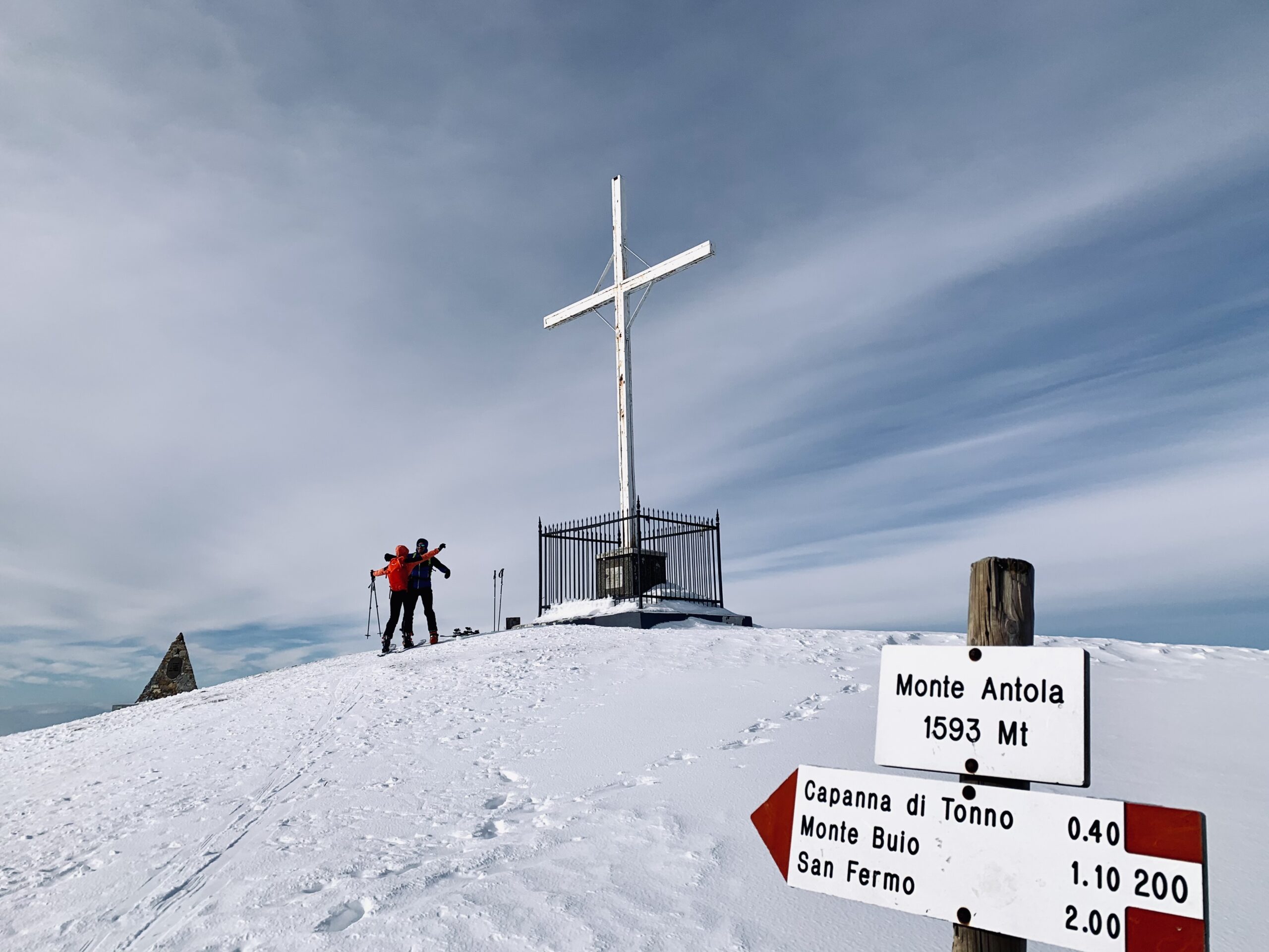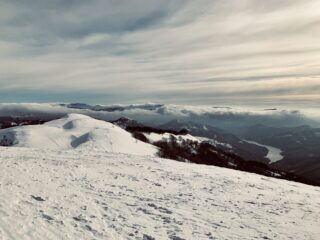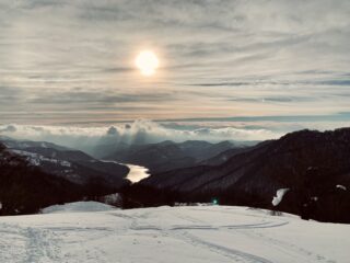 Dopo una gita il 7/1/21 su farina pazzesca e abbondantissima, si sfrutta ancora un po’ la tanta e straordinaria neve sul nostro Antola. A Genova nuvole, incredibilmente a Propata è bello e c’è poco vento persino in vetta, tutto sommato. Partenza presto con salita su neve dura e con buon grip. Rientro presto per esigenze lavorative quindi il sole non aveva ancora fatto il suo. Discesa su sastrugetti ventati dalla notte prima e orme di ciaspolatori ghiacciati ma qualche curvetta trasformata sui pendii più fortunati ce la siam fatta.
