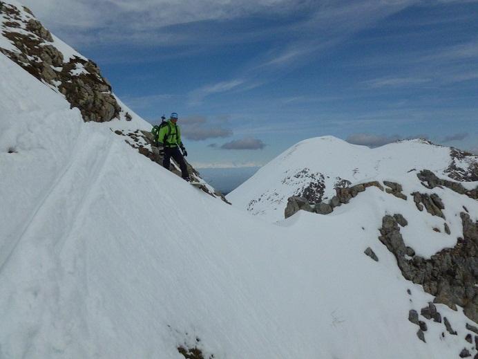 Gita in compagnia di Alain-Diego-Flowered. Sento Andrea Skenone al telefono e mi dice che ha trovato buone cundi alla NE. Uhm…mi sento con Alain e decidiamo di approffitare di questa dritta e soprattutto fare ancora una sciata vista mare…da Garessio sino al monte Grosso e poi giù al colletto. Quindi su dalla normale. In vetta un’arietta fresca ci mette qualche brivido e ci mette fretta nel prepararci. La parete è ben innevata. Prime curve su neve “accartonata” ma dopo migliora. Non straordinaria, ma godibile. Un simil trasfo-lourde divertente. Strettoia un pò “mangusta” e traverso a posto. Risaliamo al m. Grosso contenti. Giro veloce, ma di soddisfazione. Poi un pò di vino e tagliatelle concludono una buona giornata di..du bon ski