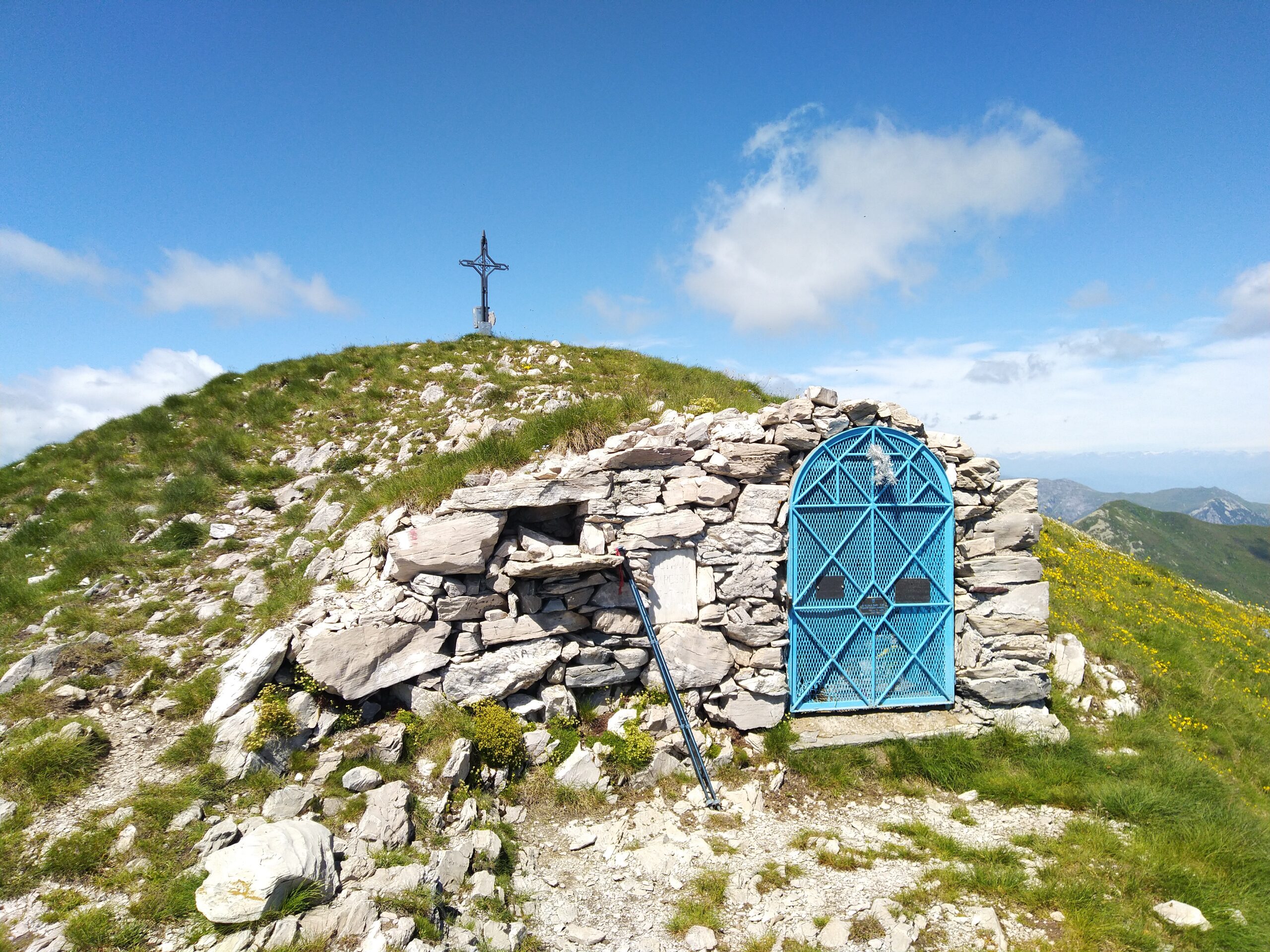 Risalire la carrareccia fino ad una vasca per l’acqua, proseguire fino ad un bivio a quota 1539 m dove il sentiero di sinistra va a Colla dei Termini, a destra e poi diritto si sale per il monte Antoroto (segnavia bianco-rossi e pali piantati ). Arrivati sull’ampia insellatura si gira a destra e in 10 minuti si arriva in vetta: croce con cappelletta della Madonna poco sotto