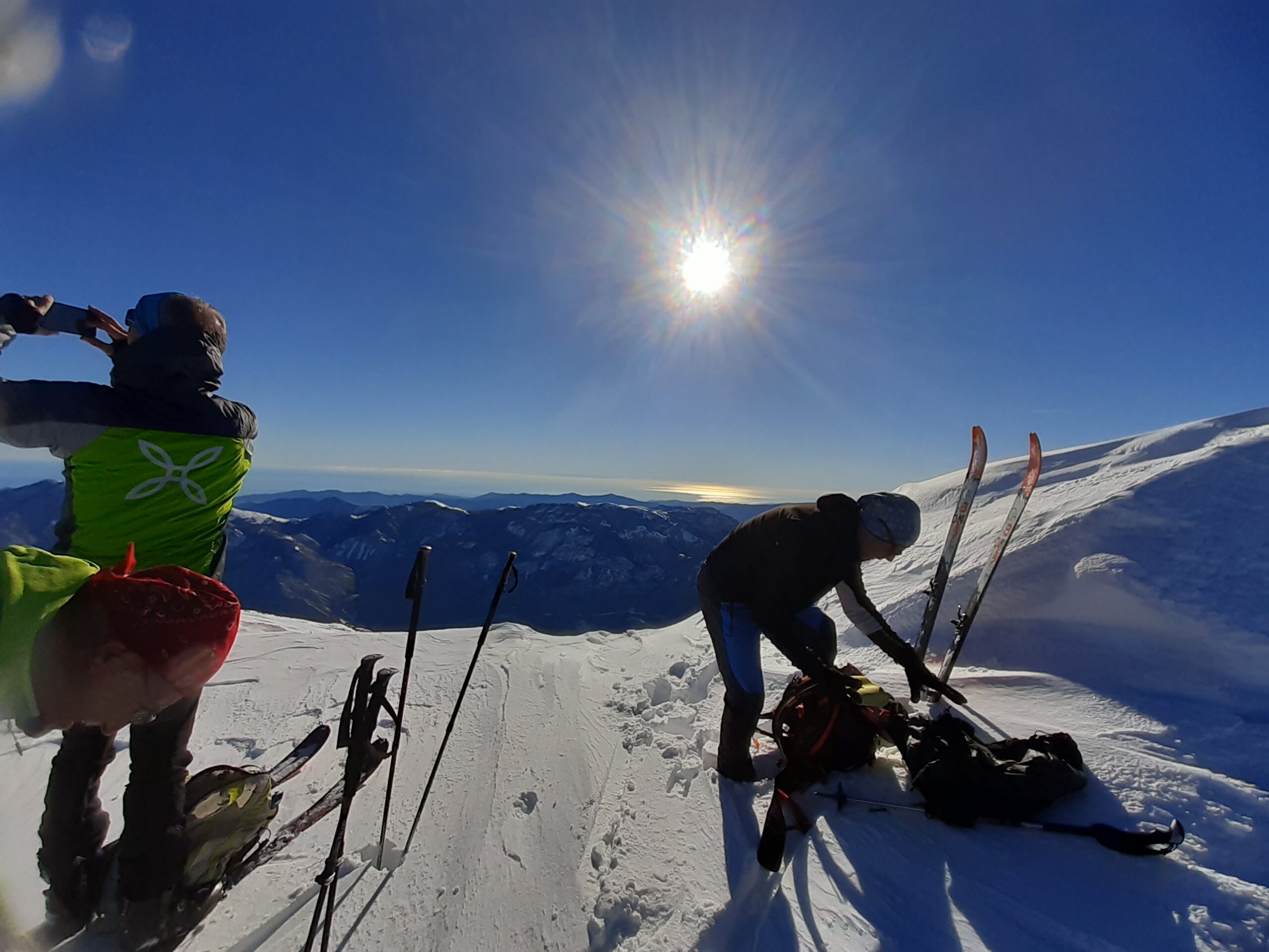 Giornata spettacolare con un panorama che solo la Val Tanaro può offrire: l’azzurro del vicino Mar Ligure, la Corsica, Genova, le Alpi Apuane, il Monterosa, il Monviso e tutto l’arco alpino fino alla Lombardia. Oggi festa degli scialpinisti, numerosissimi sui vari itinerari, ma anche ciaspolari e semplici passeggiatori. Bella gita e compagnia numerosa, per concludere birra ed un ottimo strudel alle pere alla baita Gallo di Monte, proprio sulla colla.