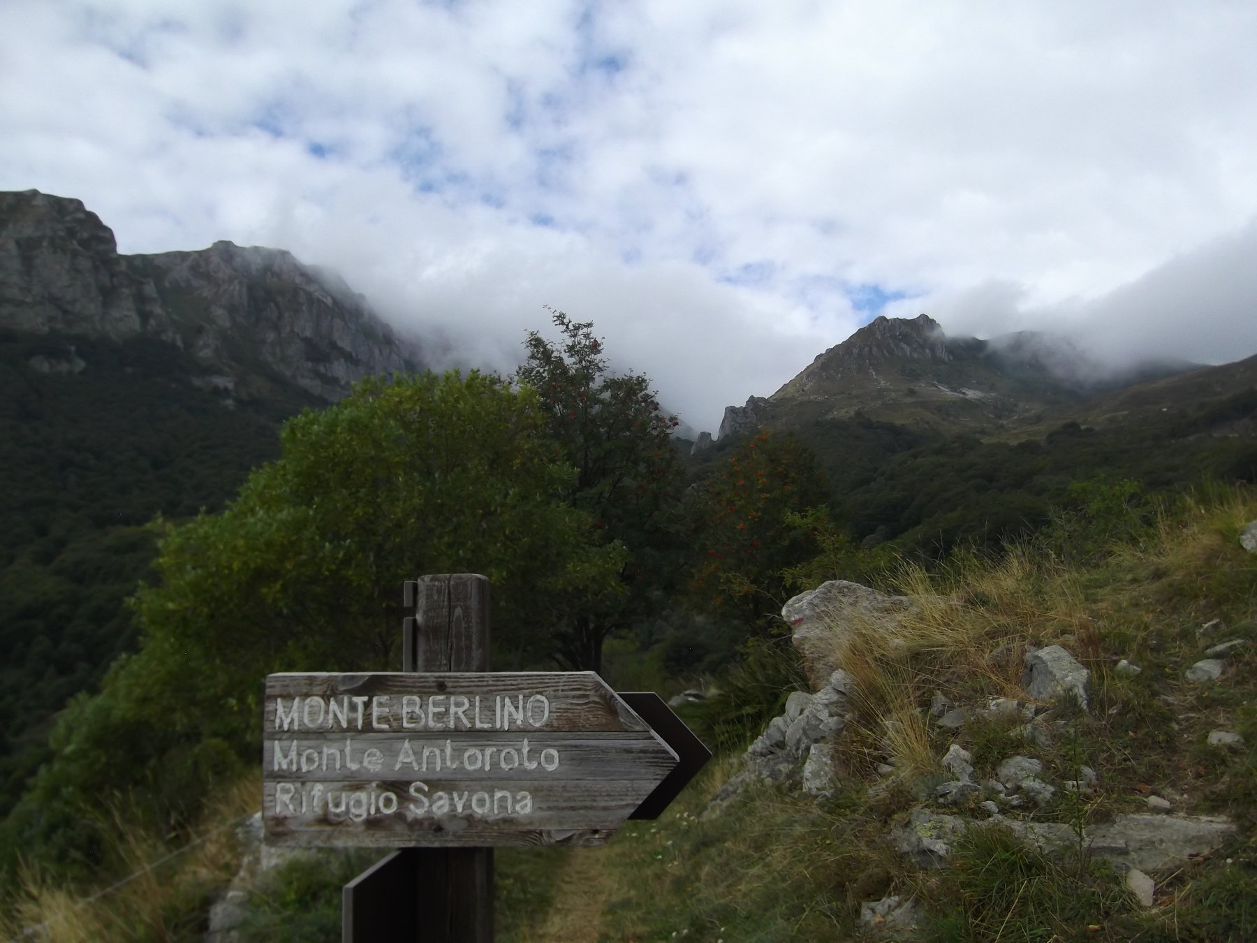 Nonostante le previsioni dessero pioggia dalla tarda mattinata, sono partito lo stesso e per precauzione ho svolto il giro al contrario e dopo il Monte Grosso con solo nubi e della nebbia, a raggiungere l’Antoroto dove pranzo. Con sempre solo nuvole, ritorno alla Colla Bassa e da li sceso brevemente con l’itinerario, vado a sx per passare dal Passo delle Caprette tornando al Rifugio e per la stessa all’auto. Oggi tre stelle per il mancato panorama, ma quattro per non essermi bagnato e Buona Montagna.