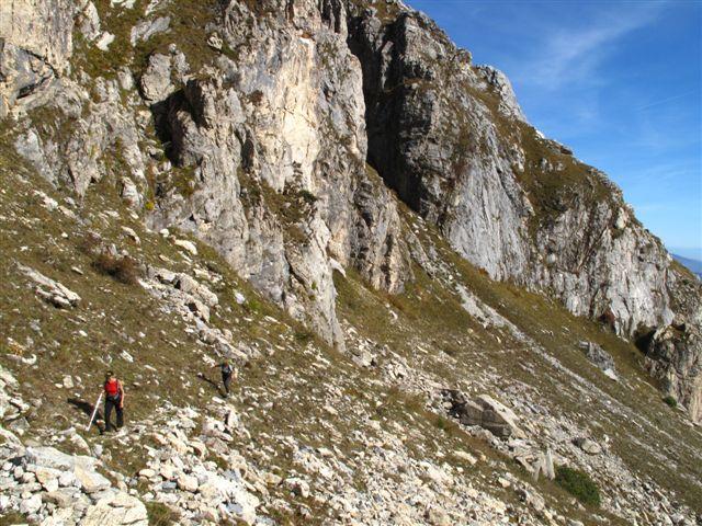 Neve ghiacciata sul sentiero dalla Colla Bassa a poco sotto il colletto.