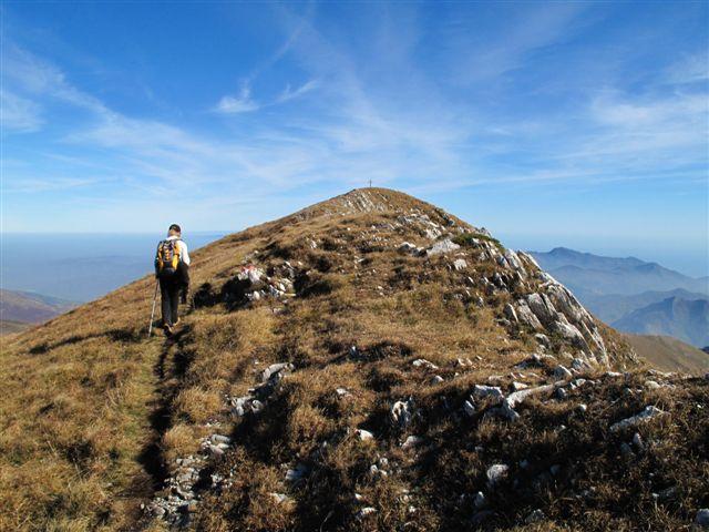 Fatto un pezzo di sentiero dal rifugio al colletto prima della Colla Bassa con una simpatica signora del posto, che ora abita a Ceva, venuta su per far visita ai sui cari defunti, ha rivangato con noi i suoi nostalgici ricordi di quando Val D’Inferno era abitata da 700 persone e lei veniva su a fare il fieno giusto dove eravamo noi ora…meno male che chiacchierava se no starle dietro….l’abbiamo invitata a salire all’Antoroto con noi ma aveva un impegno nel pomeriggio e così sarà per un’altra volta!!