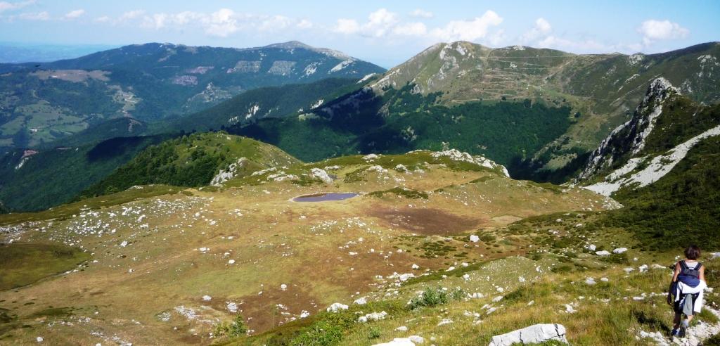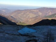 Salire verso nord-est, per pascoli e tracce alla Ciuajera (o Cinaiera 2133 m, grotta importante verso est in dolina). Scendere per tracce e sentiero al ripiano glaciale dei Lamazzi (laghetti e torbiere 1800 m), proseguire la discesa su sentiero.