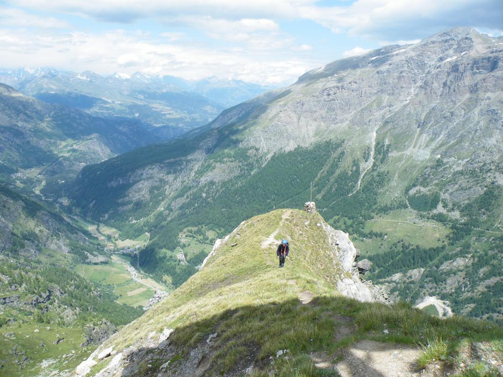 Si risale tutta la cresta, a volte molto aerea, fino a raggiungere la parte sommitale, ei pressi di un alto palo infisso in un basamento quadrato di cemento. La vera cima di 2605 m,si raggiunge con ulteriori pochi passi in cresta; essa è sormontata da un grande traliccio che sostiene un ripetitore televisivo. Su un’asta del traliccio è ancorato un cartello indicatore che segnala la via di discesa verso la località La Béthaz, lungo il sentiero n°18.