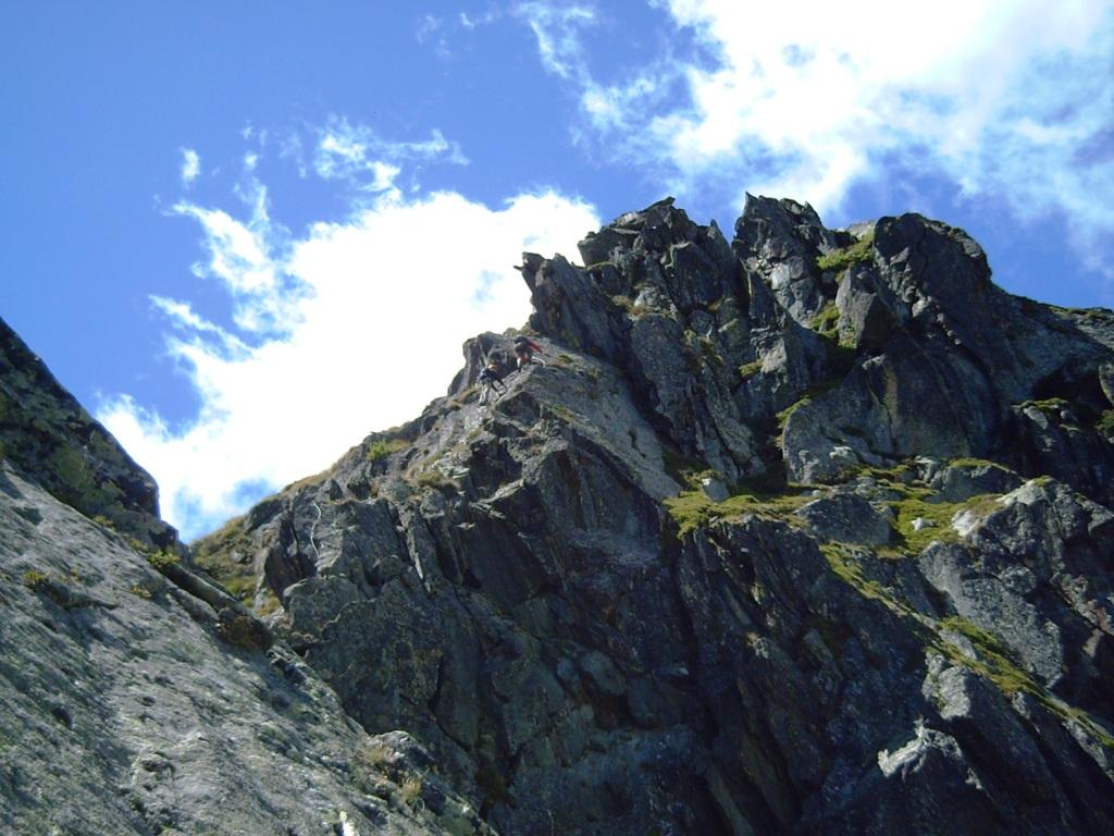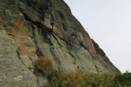 Una lunga serie di gradini, posti su un’unica linea verticale, taglia in due questa nuova parete e si dirige verso la sommità di un torrione.