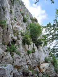 Alcune vie hanno due tiri: consigliabile la sosta intermedia per evitare il tiraggio, ma è sempre possibile scendere sino alla base con una sola calata da 35 m (giusta giusta a volte).