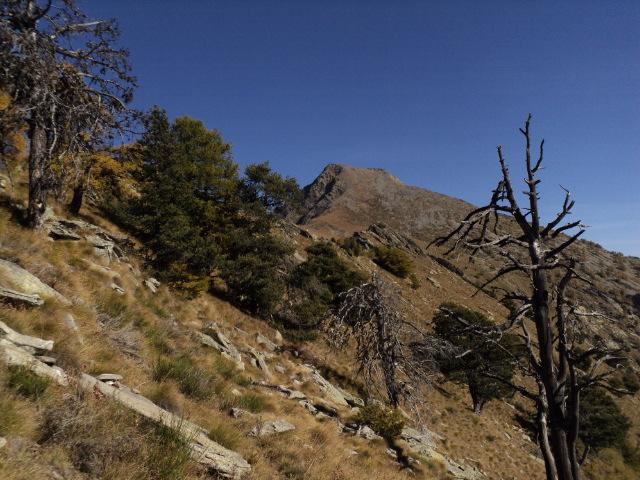 Giornata fantastica senza una nuvola e con la temperatura ideale. Il sentiero dall’alpe Seura in poi è privo di qualsiasi indicazione e, una volta sulla cresta, in due diversi punti le tracce diventano quasi invisibili. Ma se si prova a proseguire ugualmente, prima o poi si riesce a individuare il sentiero. E’ stupefacente la diversità della vegetazione tra il versante sud e quello nord della cresta di salita. Nel versante sud sembra quasi di vedere un panorama della Corsica, mentre in quello nord sembra di essere in Scandinavia.