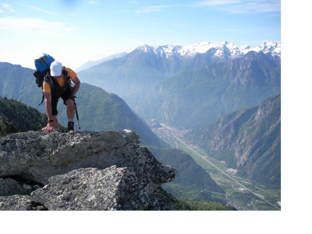 Gia’ abbastanza esauriente e’ il commento di guidofrax relativo alla gita in questione. Solo noi siamo partiti da Pre’ che e’ un po piu’ alto di Arnad da dove invece e’ salito il gulliveriano a cui facciamo riferimento. E dopo circa un km di strada asfaltata a monte di Pre’ ci immettiamo nella bella mulattiera che tramite la frazione Fornelle ci porta al Col Vert. Una lunga cresta con ottima traccia ci ha permesso di posare piede prima sull’unica cima che si incontra sul cammino di cresta, la Cima Graula’ montagna di non particolare rilevanza, ma che fa’ sempre numero. Infine il monte dell’Aquila, l’obbiettivo massimo di oggi. In vetta regnava un clima mite con sbuffi d’aria fresca avvertibili solo se ci si affacciava sul sommo della cresta. Cielo velato ma nel complesso una gradevole giornata, con prevalenza di sole. Siamo scesi con il proposito di compiere il rientro ad anello, calando dapprima al Col Chiva per la non poi cosi tanto facile cresta nord-est, e divallare all’interno dell’impervio e selvaggio vallone che dal Colle mira giu’ diritto al Santuario di Machaby. Una ravanata senza precedenti, in un ambiente dove la natura, lasciata fare; ha cancellato ogni benche’ minima traccia della presenza umana negli anni. Approdati sui distensivi prati di Echallogne con bella chiesetta al seguito, abbiamo chiuso il giro ad anello su ottima mulattiera, a tratti molto ripida(con addirittura scale in legno),che ci ha permesso di rientrare a Pre’ in un tempo attorno alle 8h(il giro completo).Onde evitare lunghe e assurde ravanate con insito qualche rischio che ci si possa anche far male, si consiglia di ritornare per il medesimo tragitto fatto in salita, anche se molto lungo.Con Carlo e Giovanni