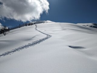 Tanta neve marcia alla partenza (alle 13 +6 all’alpe Colombino). Salendo la temperatura scende velocemente e la neve migliora. Discesa: fino all’intermedia farina pesante ma ben sciabile. Sotto un piccolo pezzo di quasi crosta che poi migliora. Nella parte bassa sono sceso direttamente sui pendii evitando la stradina: neve molto bagnata ma comunque divertente. Alla fine tra 3 e 4 stelle.