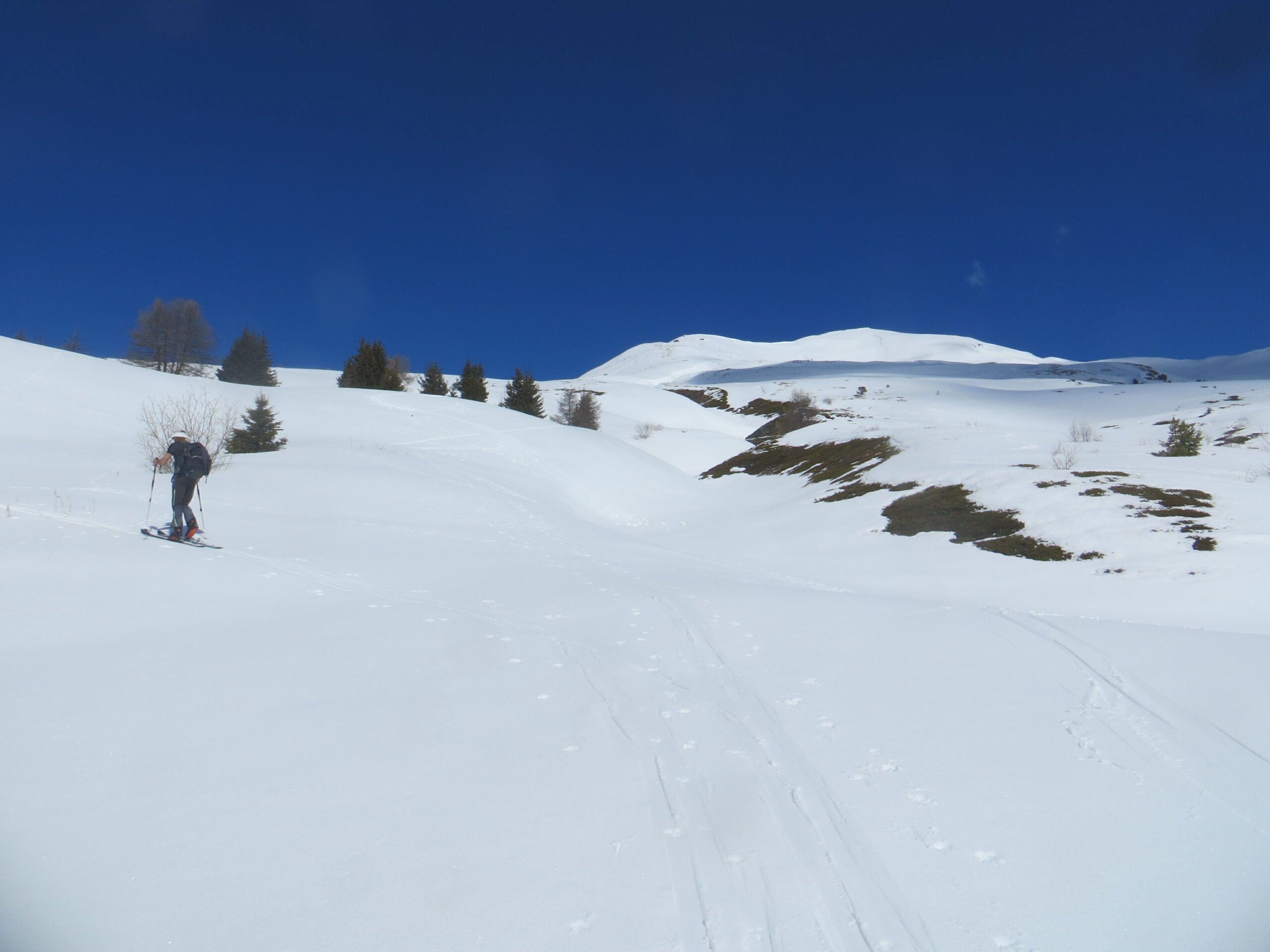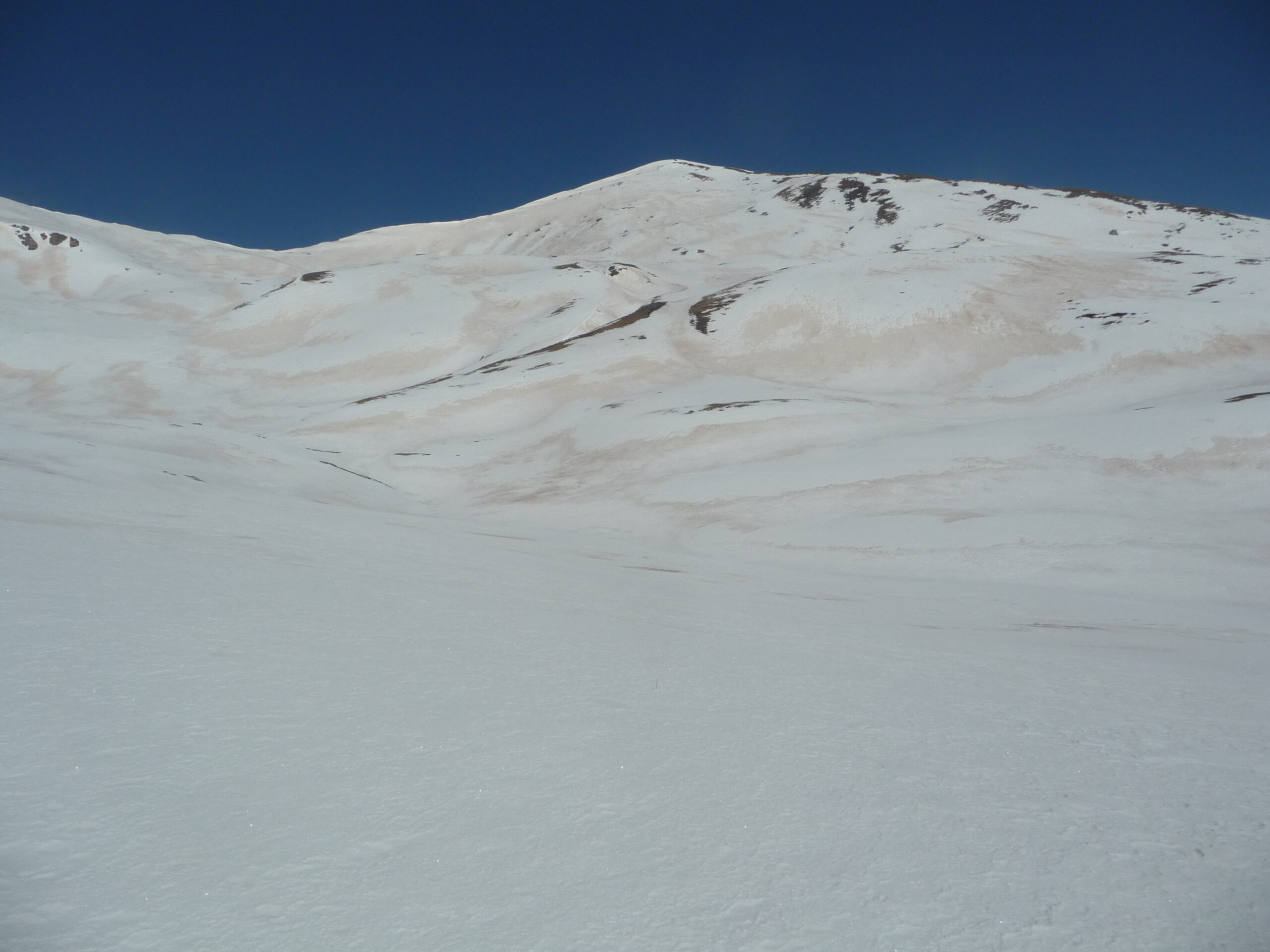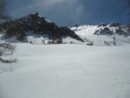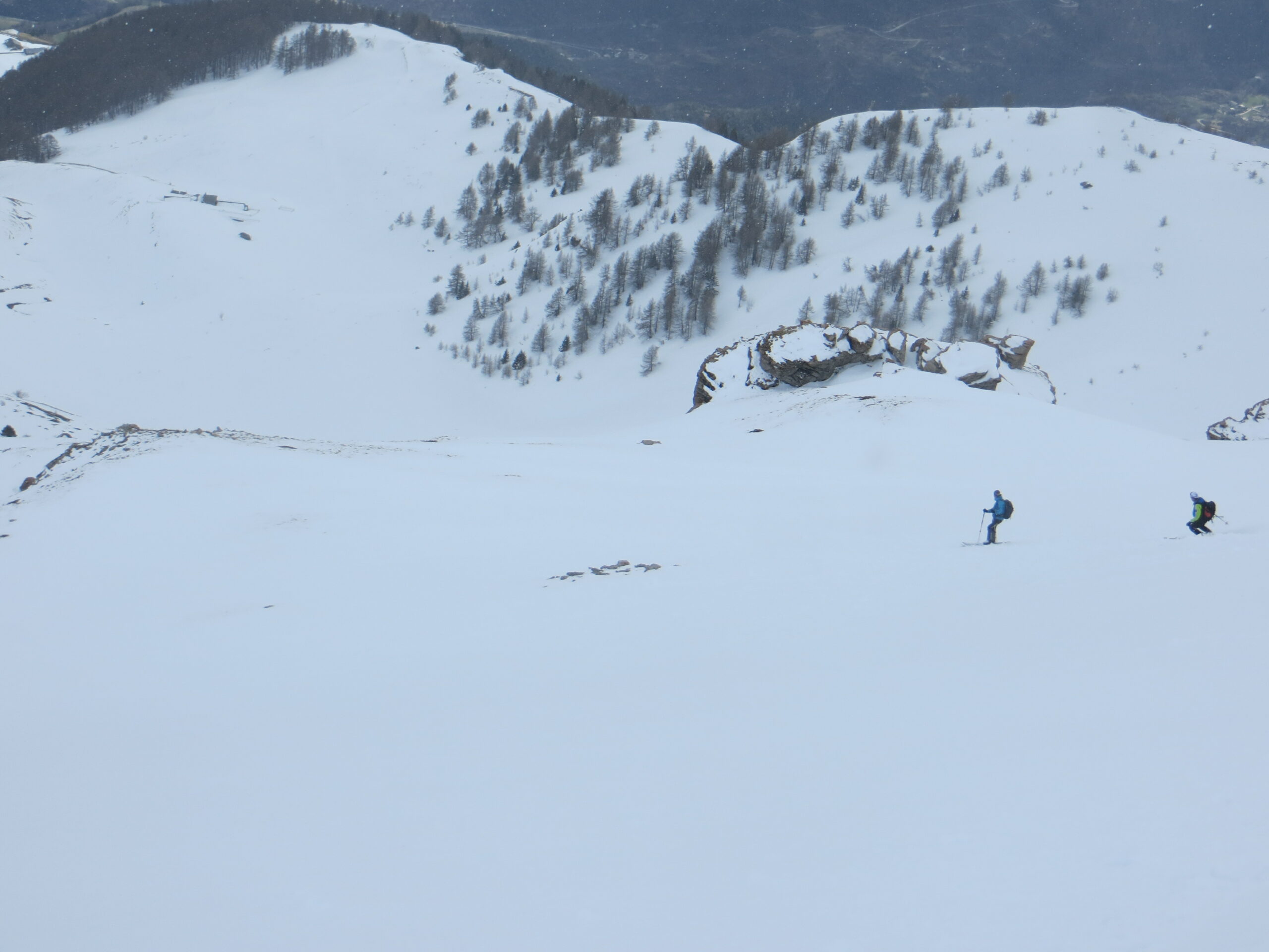 Per la discesa spostarsi un pò verso nord seguendo la cresta e scegliere il pendio migliore