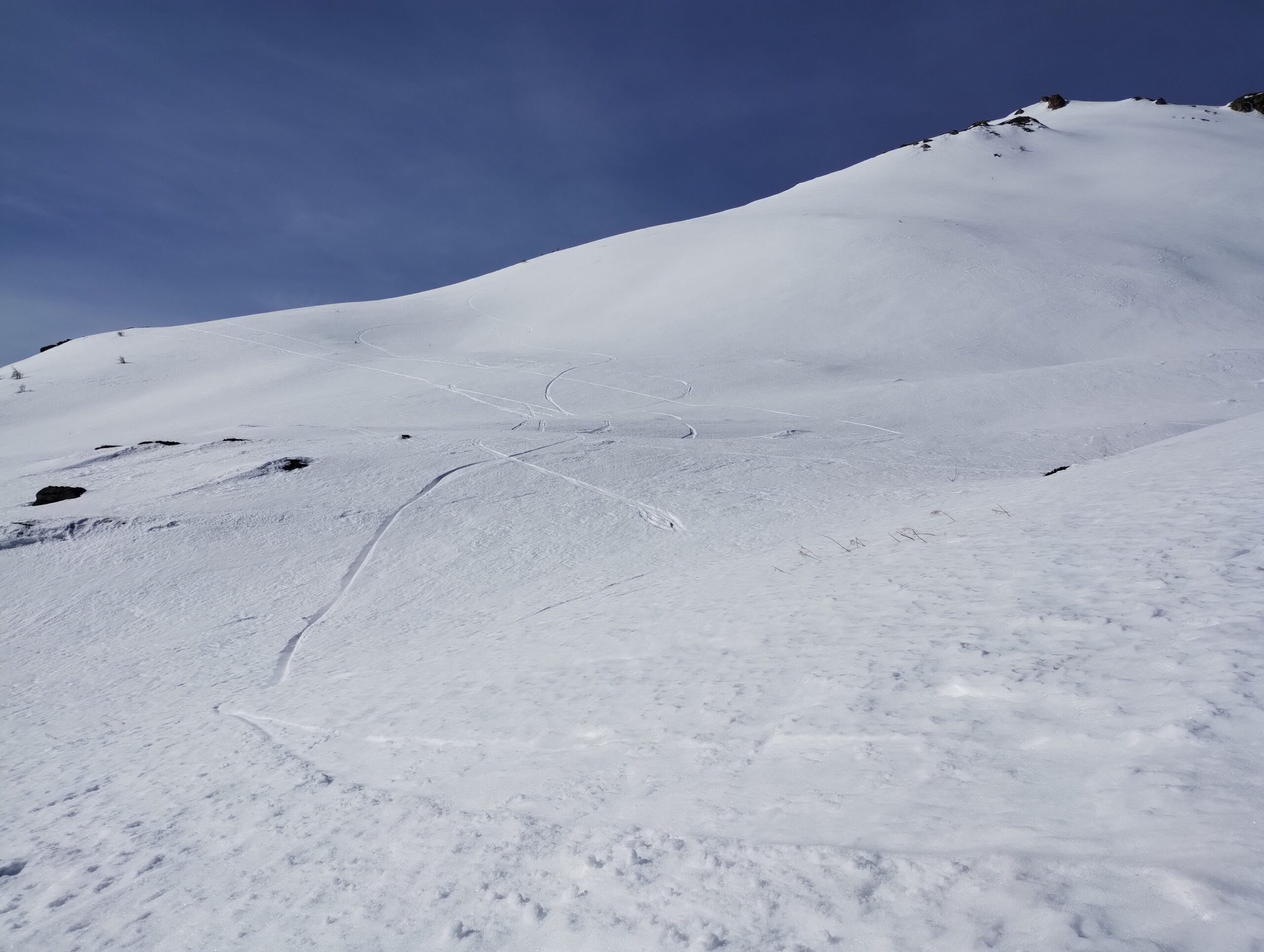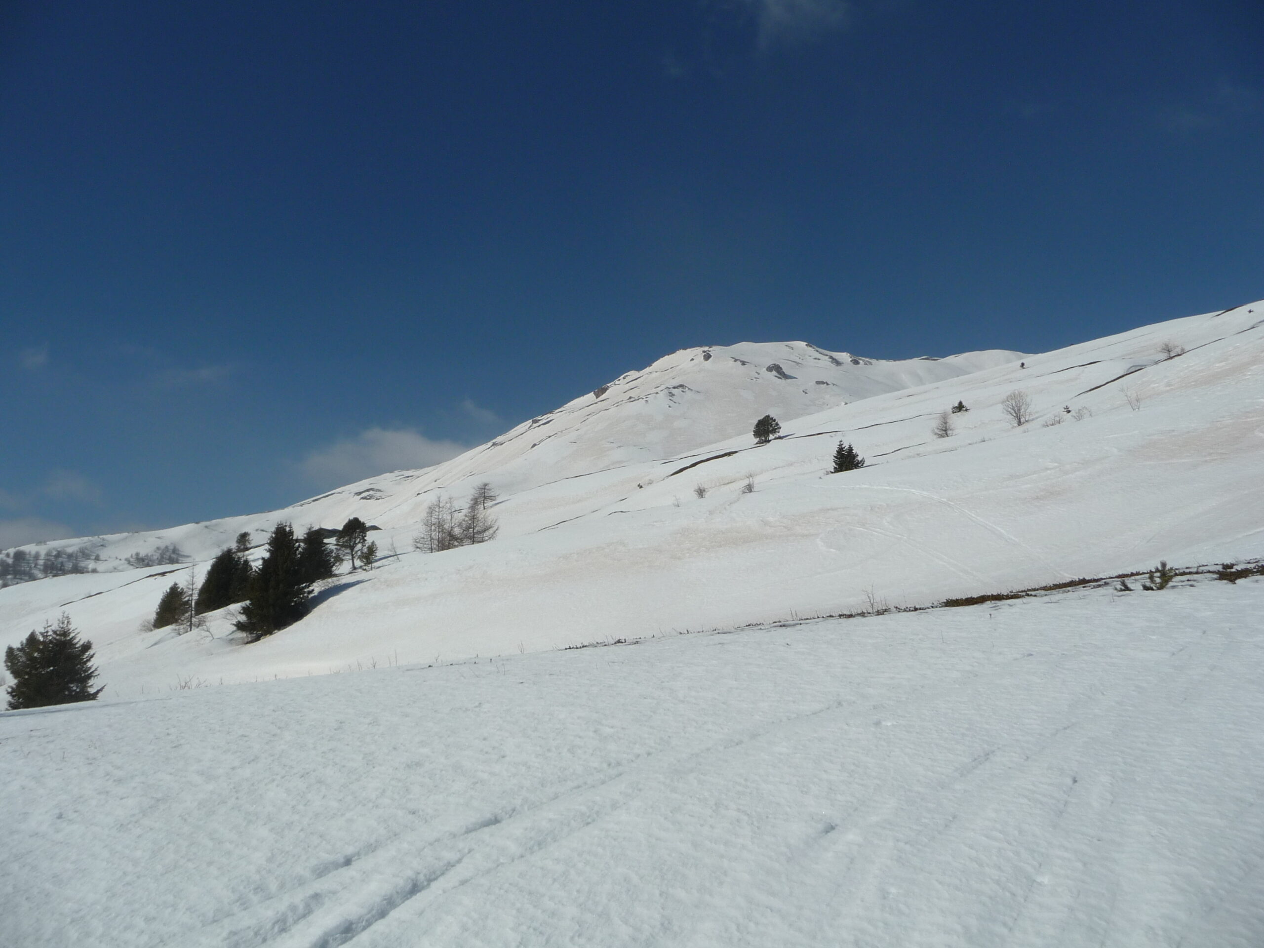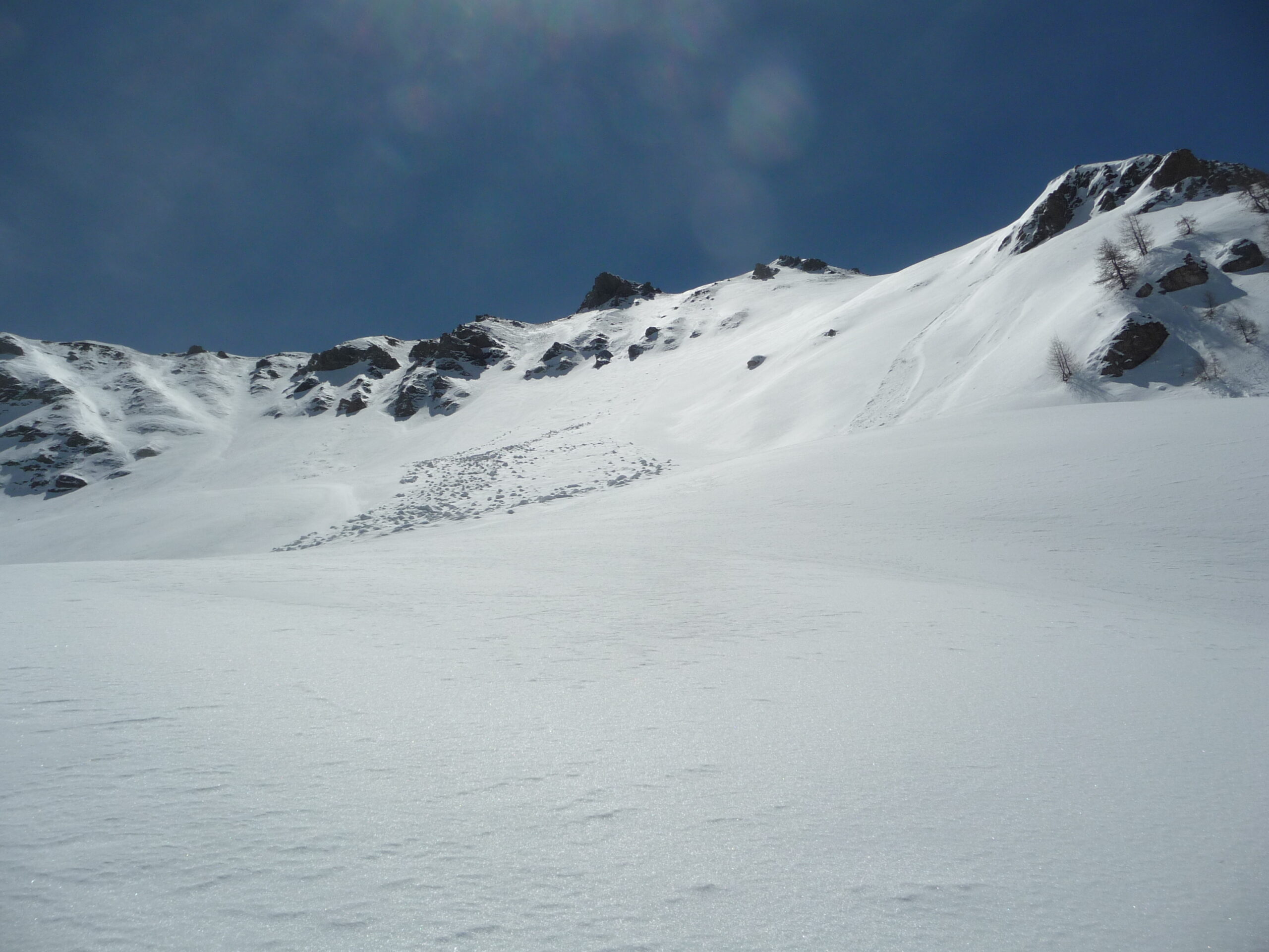Per la discesa spostarsi un pò verso nord seguendo la cresta e scegliere il pendio migliore