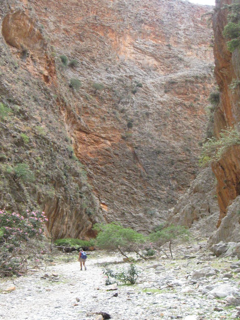 Alternando tratti di sentiero e passaggi su massi, lasciando le deviazioni per Livanianà e Aghio Ioannis (ben segnalate), si arriva alla parte finale sempre tra pareti altissime di roccia rossastra dove pascolano capre veramente equilibriste.