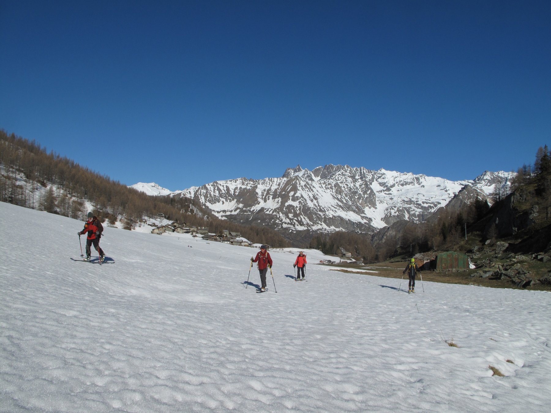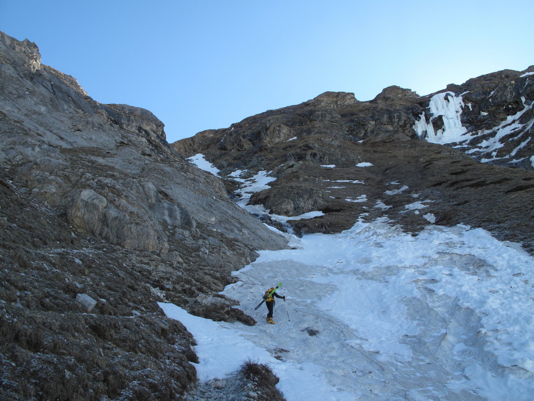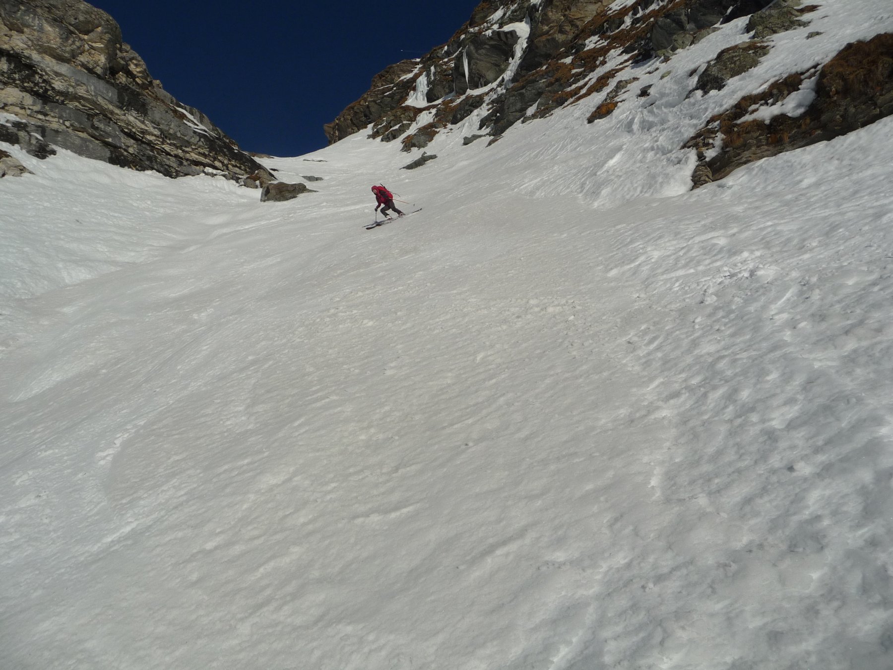 Da Cheneil si sale verso il ripido canale (non sempre praticabile) del torrente Cheneil (direz. E-NE), a seconda delle condizioni di innevamento seguire la traccia del sentiero estivo (segnavia n° 26), o tenersi in centro al vallone.