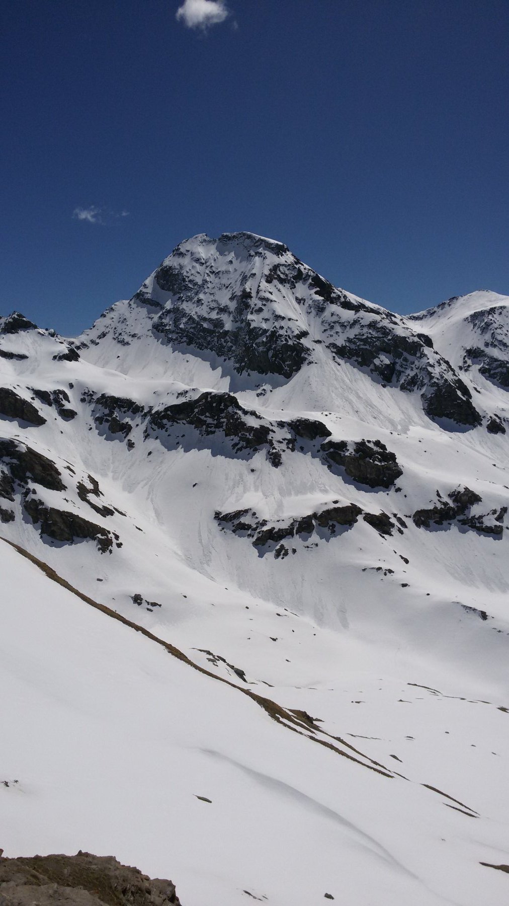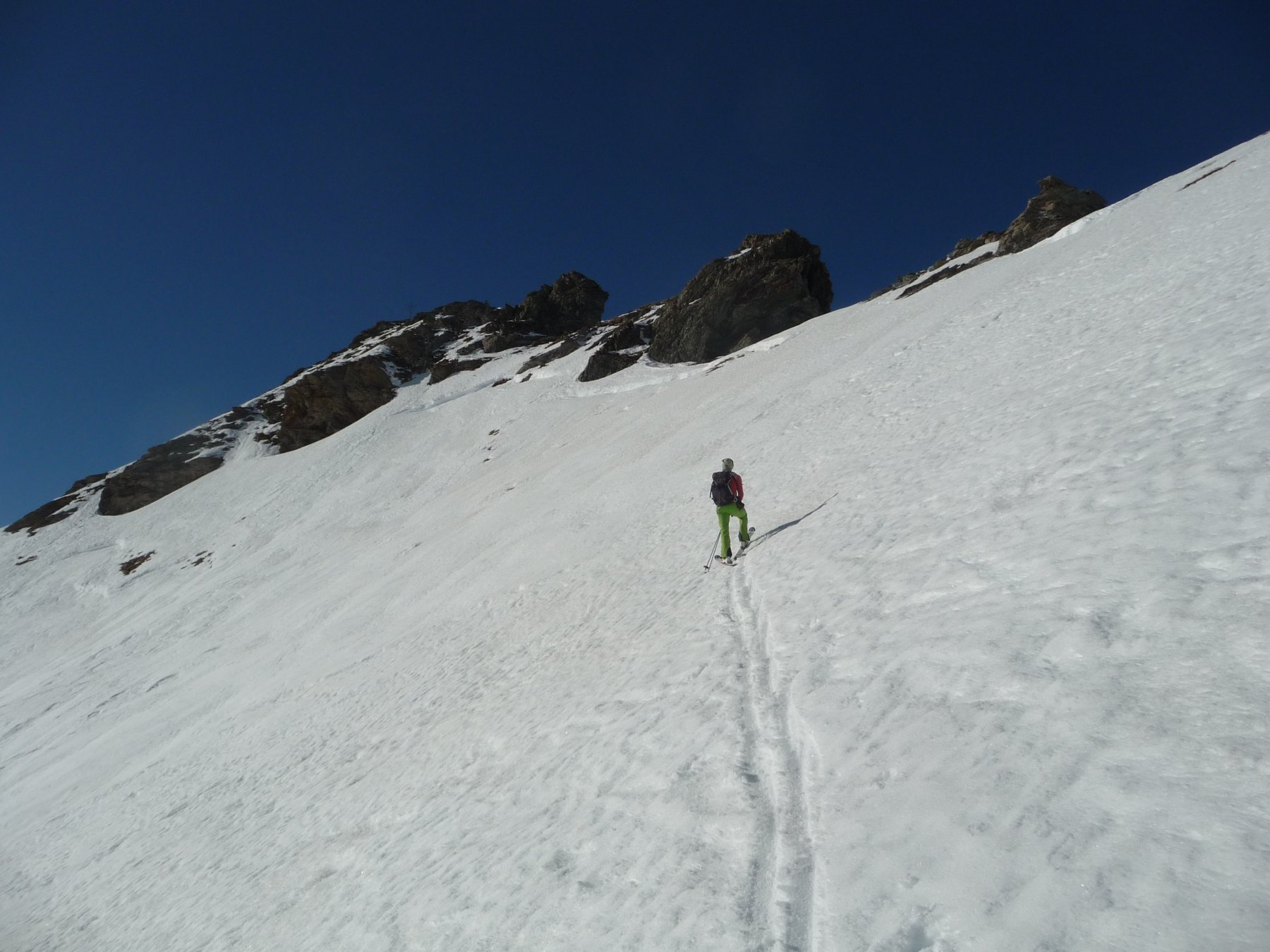 A quota 2650~ girare a sinistra e risalire il pendio esposto a SE fino a q. 2900~, di qui in breve in punta a piedi.