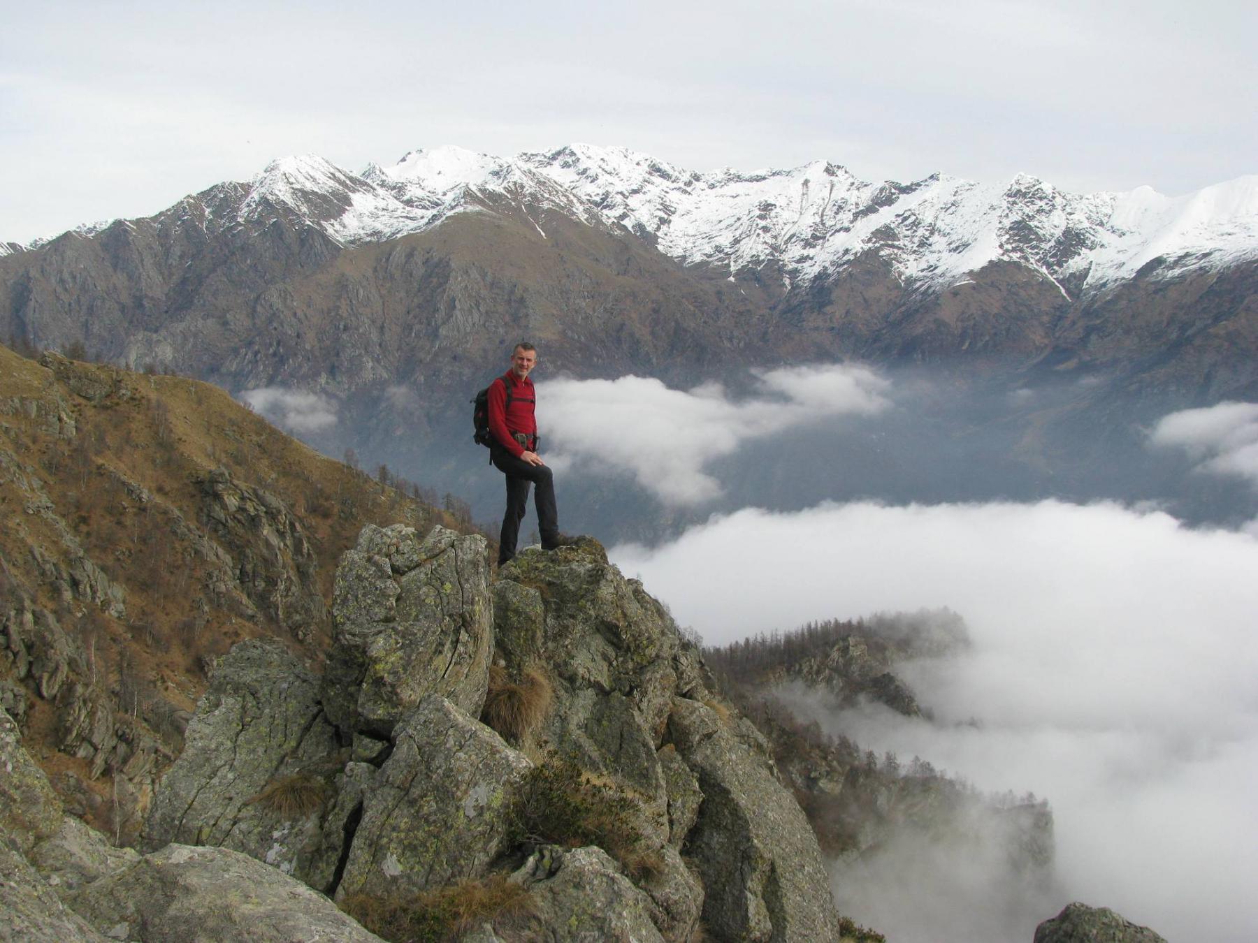 Con l’Amico Franco, già più volte avevamo parlato di andare ad esplorare il sentiero tratteggiato in nero sulla carta Mu, che dai pressi di Cantelletto raggiunge le case la Balma, poi con un traverso pressoché in piano, taglia i ripidi pendii del versante sinistro orografico delle Comunasse, raggiunge il Rio Budano e risale il pendio del versante destro orografico e giunge alle baite di Pian Russa. Stamattina abbiamo deciso di seguire detto sentiero, ma oltre le case Balme, di sentiero nessuna traccia salvo qualche labile e brevissimo tratto, il resto è un difficile traverso su ripido pendio boscoso con molta boscaglia secca a terra e ad altezza uomo che costringe a fare un po’ di gimkana per procedere; passato il Rio Budano si segue una traccia di animali che risale sempre ripida ma un po’ meno sporca e più facilmente si raggiungono le case di Pian Russa. Il resto tutto molto più facile come da itinerario. Grazie all’amico Franco per questa per me, comunque interessante passeggiata pre-natalizia.