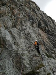 Bellissima scalata, ambiente da favola, luogo appartato seppur non troppo lontano dall’auto, arrampicata elegante e quasi sempre verticale; roccia buona, chiodatura perfetta.
