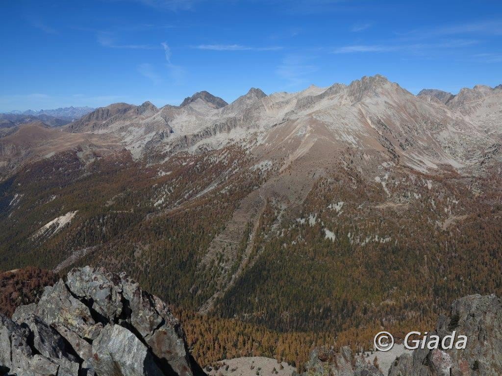 Scendere sull’altro versante sul colle tra la Cime de Vallette e il Mont Archas. Salire con bella traccia/sentiero, tenendo il crinale a sinistra dal colle, fino a giungere il vetta al panoramicissimo Mont Archas m.2526, grosso ometto. La vista è notevole: spazia dal Pepoiri alle vetta di Isola 2000, le Alpi Cozie e Marittime, il Giegn, Tablasses, Fremamorta, tutto il gruppo dell’Argentera, Agnelliere, St Robert, Gelas, Maledia, Grand Capelet, Bego, Cime du Diable, Pelago, il mare, per citarne solo alcuni!