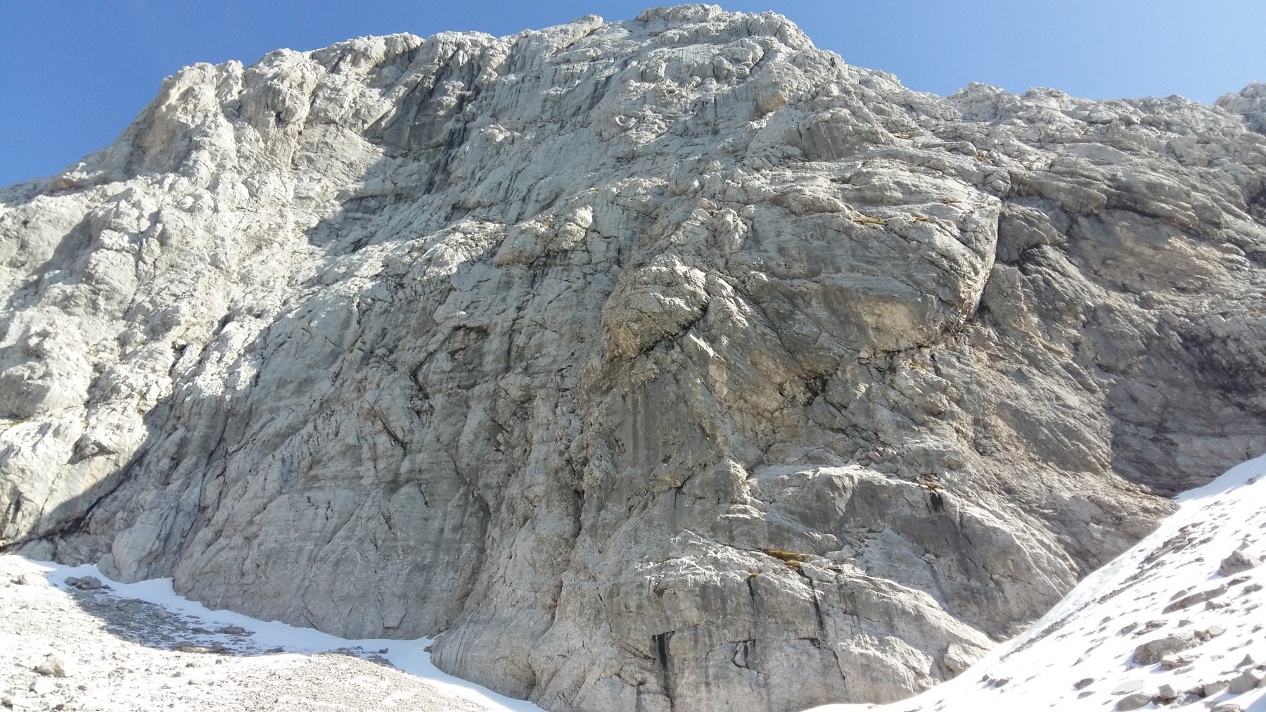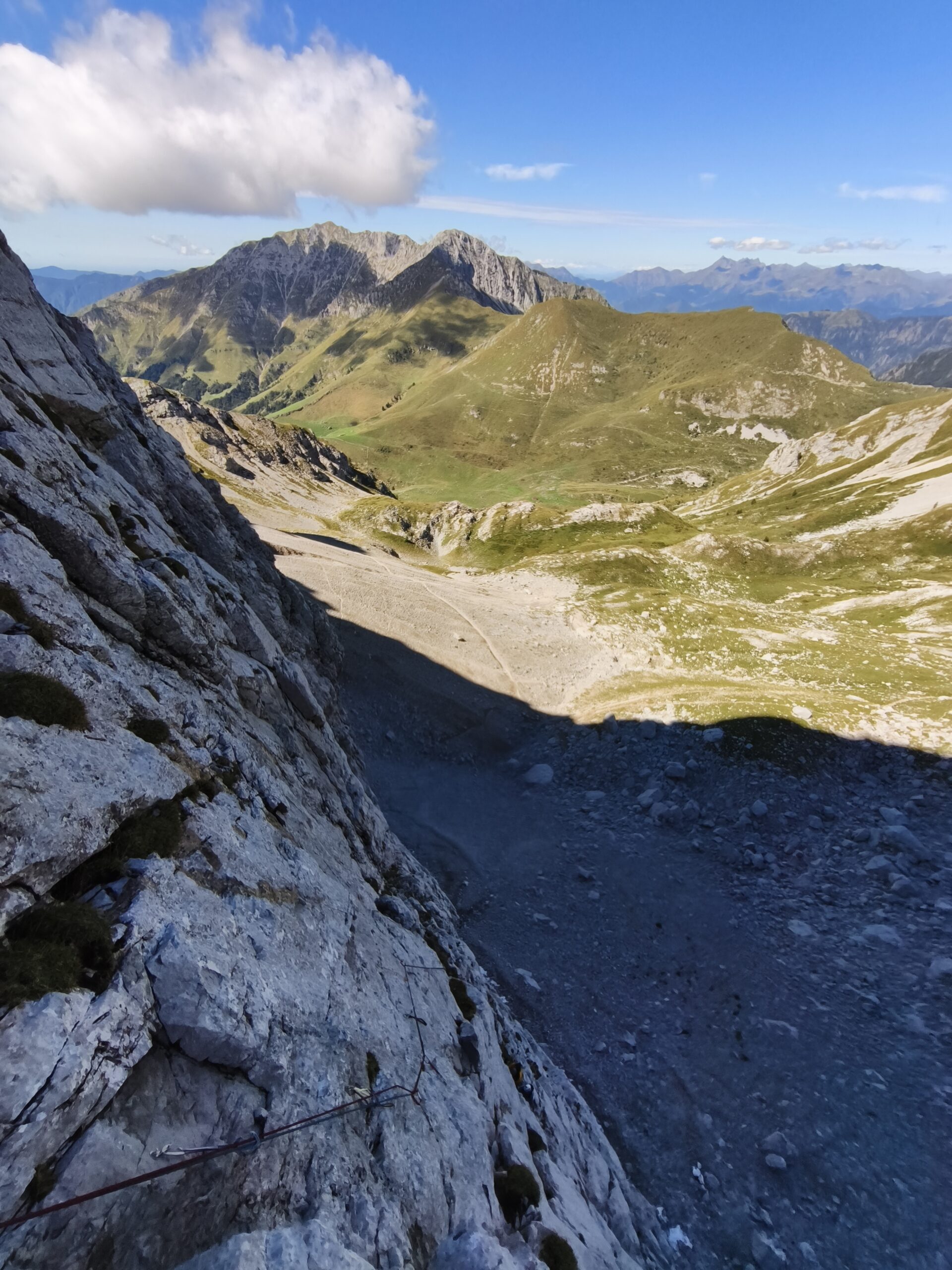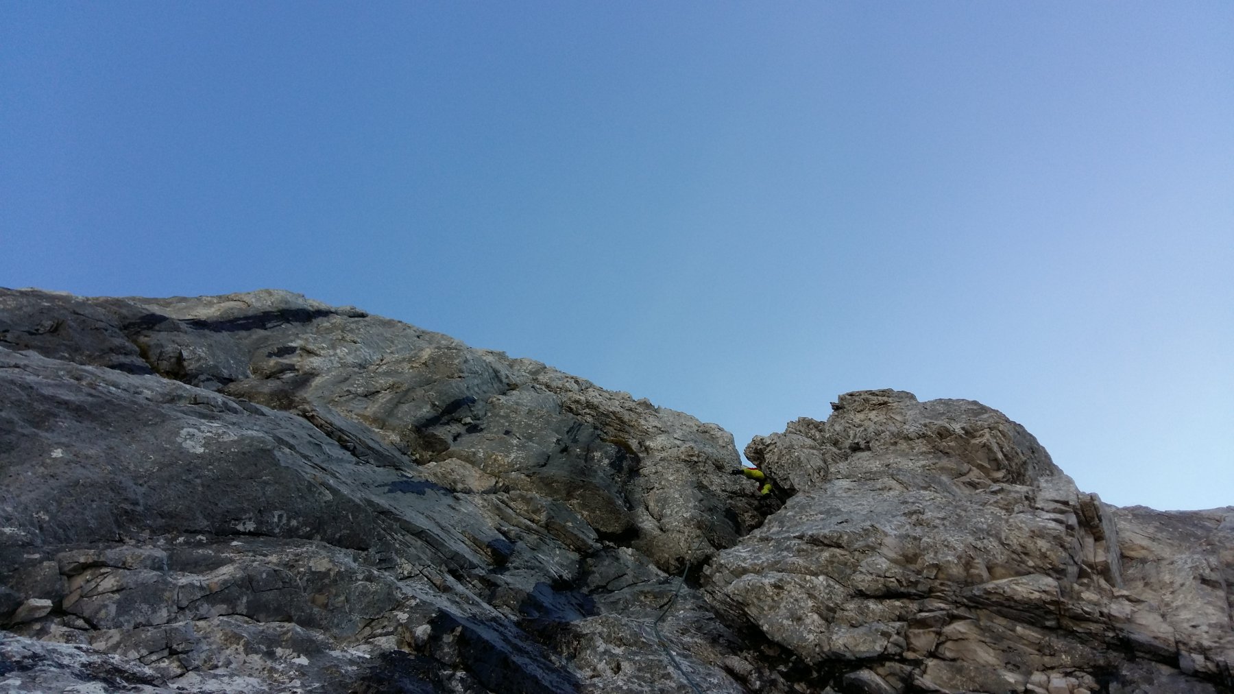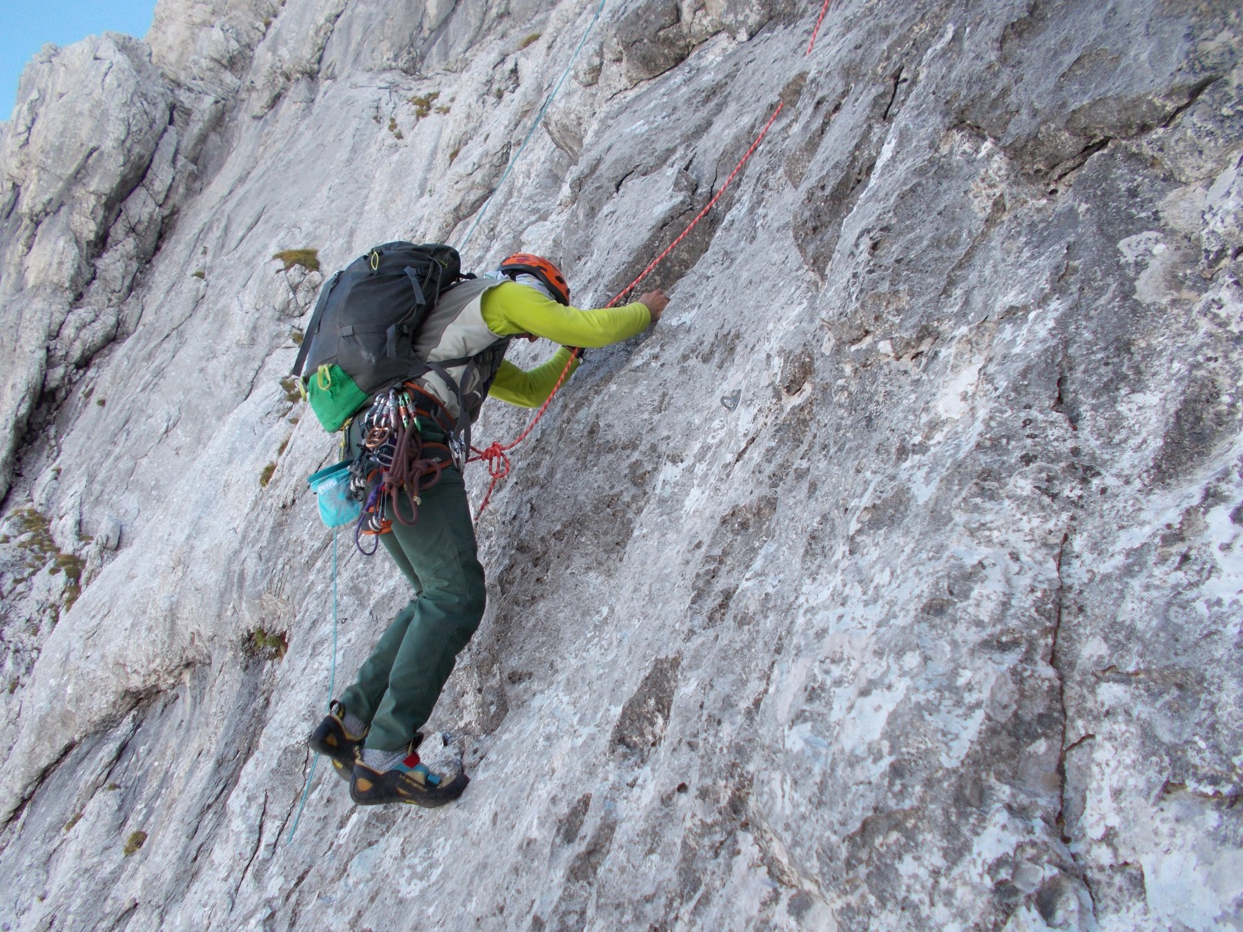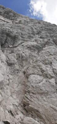 La parete nord-ovest dell'anticima del Pizzo Arera regala una roccia molto compatta lungo la quale sono stati aperti numerosi itinerari sportivi.