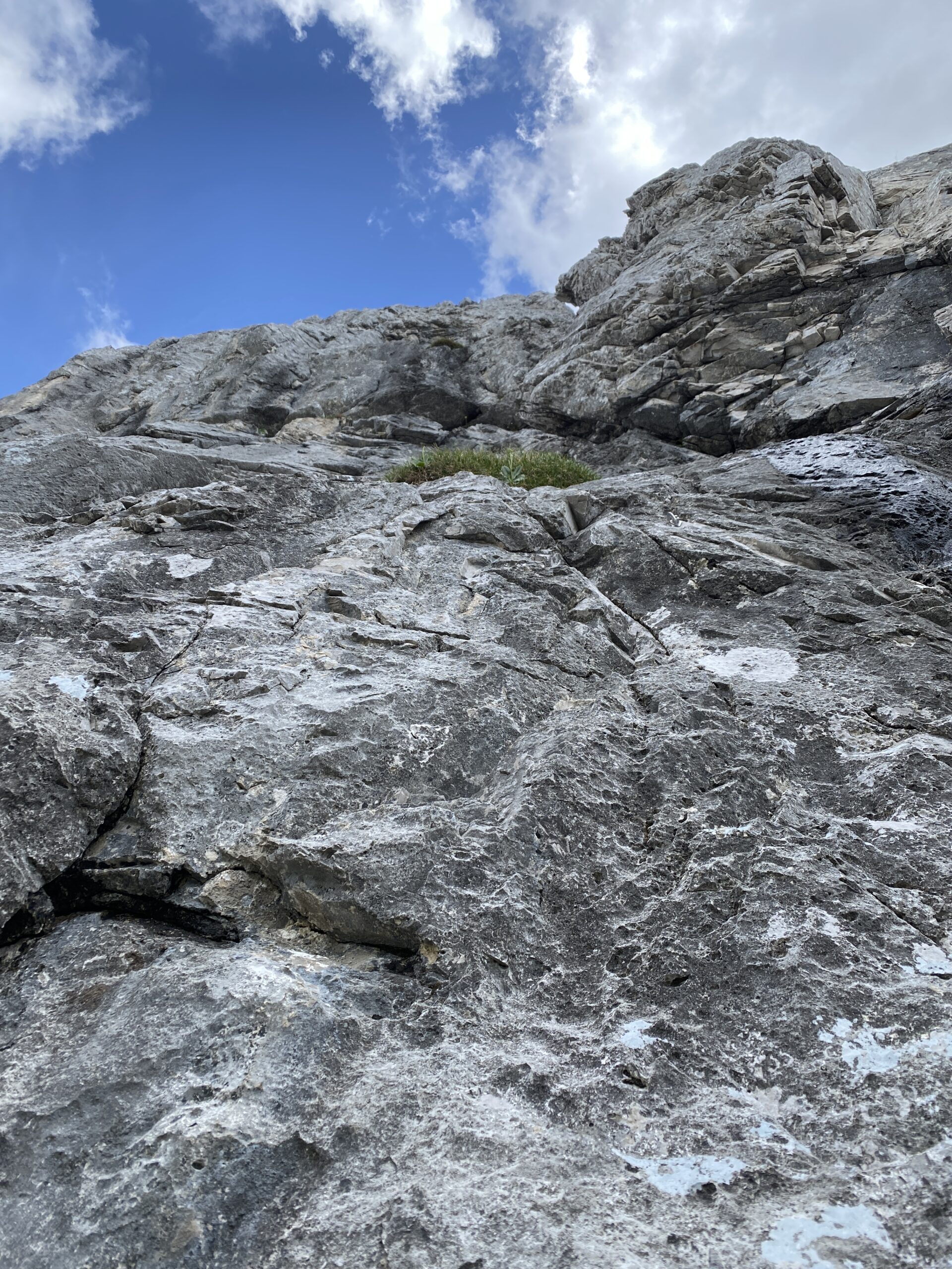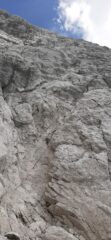 Essendo una via affollata su una parete con roccia non buona, ci siamo ritrovati costantemente sassi caderci in testa.