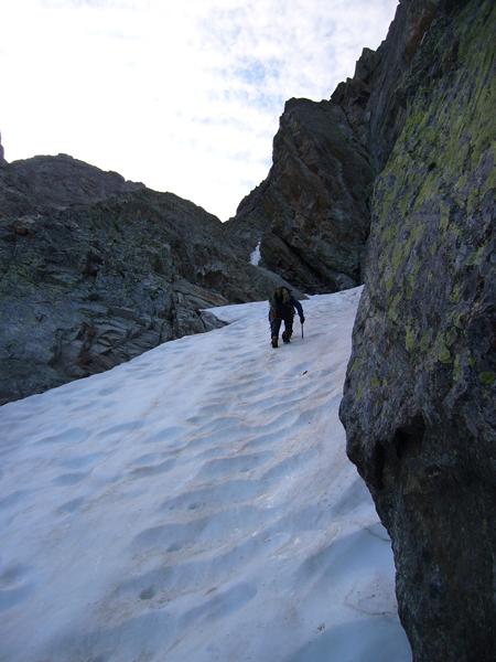 Nota molto gioiosa è che il colle dei detriti è ancora abbastanza ben innevato si scende praticamente scivolando sino al remondino !!!