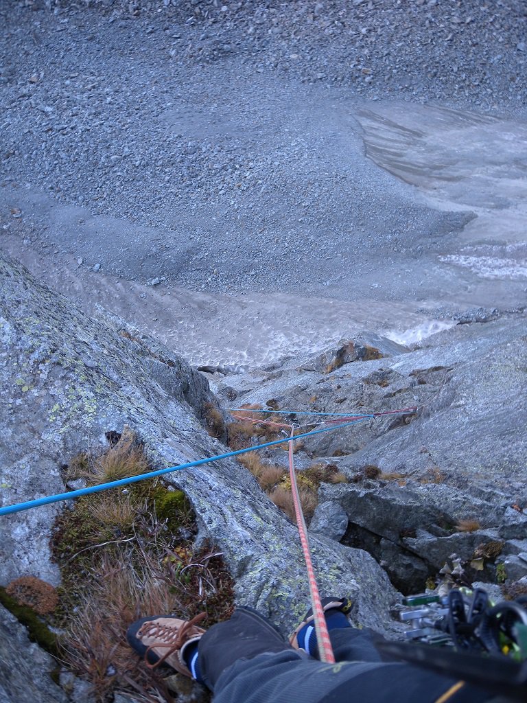 Da qui si prosegue fino alla cima nord per poi scendere sulla via normale- vs est- per circa 50m; abbandonato il sentiero si taglia a sx (faccia a valle) per una cengia fino a riprendere la cresta che porta sulla punta gelas di lourusa, poi scendere fino al colletto coolidge (1,5 ore).