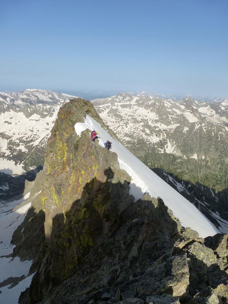 Essendo in cinque abbiamo attaccato la cresta in due cordate distinte, da 2 e 3.